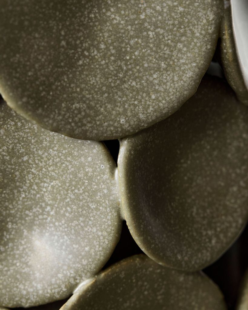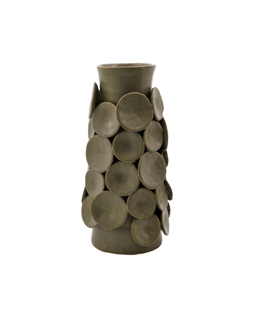 Handgjord vas i khaki med unik cirkeldesign, idealisk för att skapa en konstnärlig touch i ditt hem.