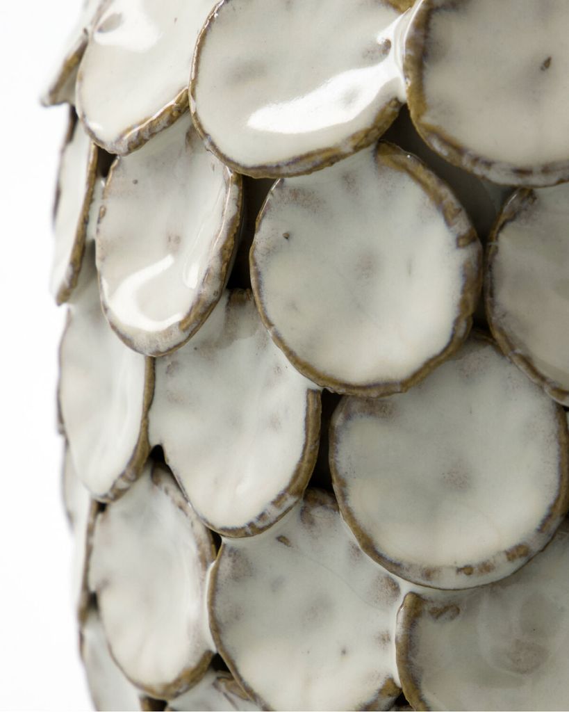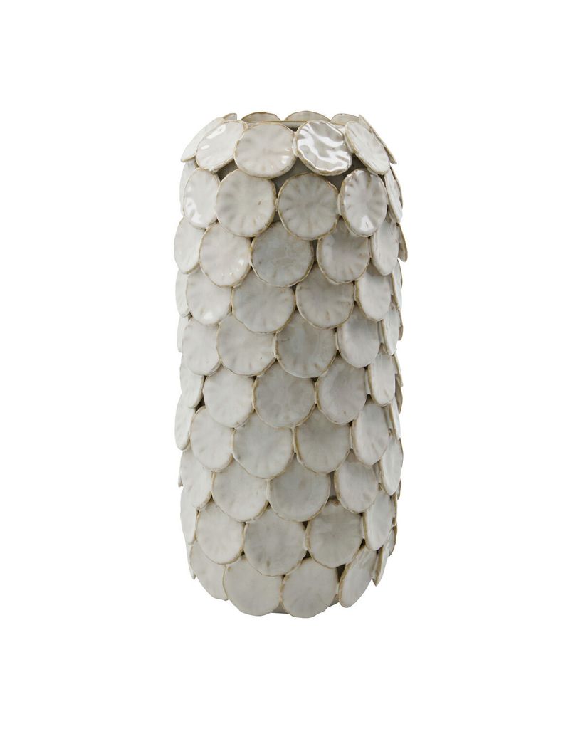 Upptäck House Doctor Dot Vas, en enastående vit vas i glaserad keramik som förvandlar vilket rum som helst med sin konstnärliga design. Vasen är prydd med ett fascinerande mönster av runda fläckar som skapar en sköldliknande effekt, vilket gör den till ett konstverk i sig. Placera den i ditt hem som ett iögonfallande designuttryck eller fyll den med din favoritbukett för ytterligare elegans. Dess tidlösa och sofistikerade utseende gör den perfekt för både moderna och klassiska miljöer, och de subtila färgnyanserna harmoniserar med alla inredningsstilar.