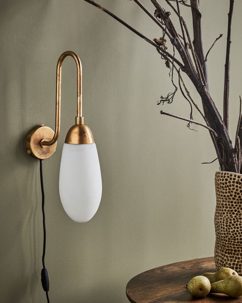 Med House Doctor Drop vägglampa i antik mässing ger du ditt hem en stilfull uppgradering. Den eleganta droppformade opalglasskärmen sprider ett mjukt och inbjudande ljus som skapar en varm atmosfär. Lampans antik mässingsfinish ger en tidlös charm, medan den 2,5 meter långa svarta tygkabeln erbjuder flexibilitet vid installation. Passar perfekt för E14-glödlampor upp till 25 W, vilket gör det enkelt att justera ljusstyrkan efter behov. Denna lampa är inte bara en ljuskälla, utan också en dekorativ detalj som tillför karaktär till ditt rum.