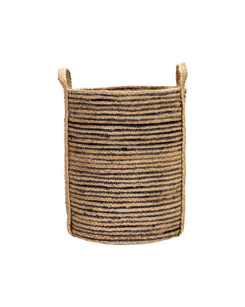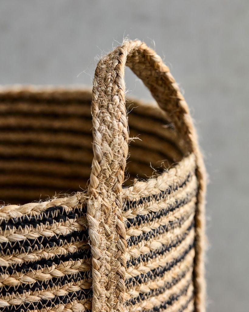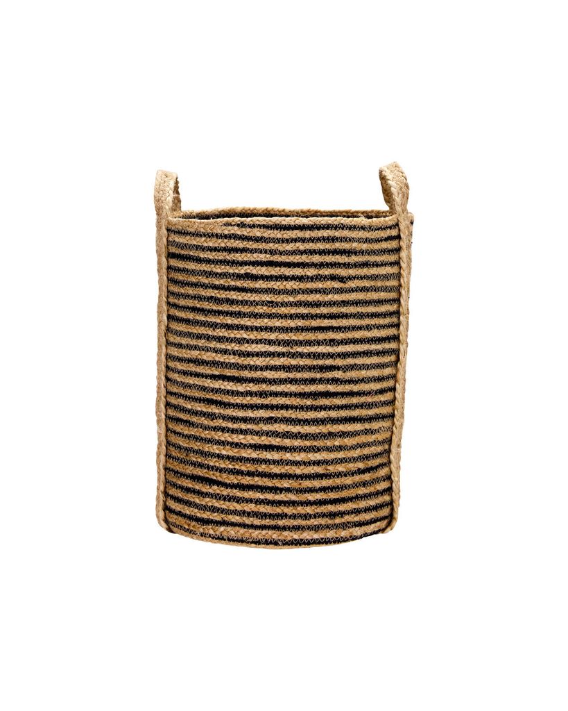 Förnya din heminredning med dessa eleganta förvaringskorgar från House Doctor. Tillverkade i naturlig jute och prydda med svarta ränder, erbjuder de en perfekt balans mellan stil och praktisk funktionalitet. Handtagen gör det enkelt att förflytta dem, och de tre olika storlekarna ger flexibilitet för att organisera allt från tvätt till leksaker. Varje korg är handgjord, vilket ger en unik touch till ditt hem och kombinerar naturliga material med stilren design.