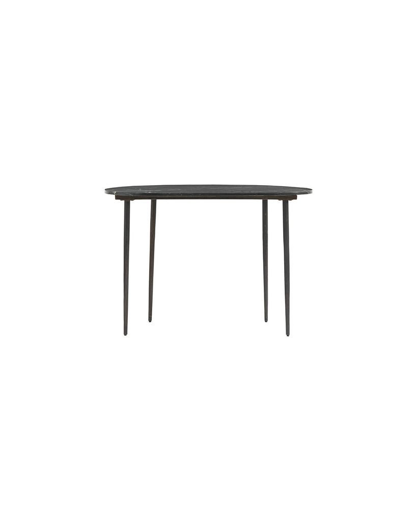 Skapa ett elegant och modernt arbetsutrymme med House Doctor Eda skrivbord. Detta stilfulla skrivbord har en oval bordsskiva i djup svart marmor, vilket ger ditt hem en lyxig känsla. Med mått på 110 cm i längd, 61,8 cm i bredd och 74 cm i höjd, erbjuder Eda en perfekt balans mellan storlek och funktion. De slanka benen i robust järn ger stadga samtidigt som de lyfter fram den sofistikerade marmorn. Perfekt för att komplettera med en designad bordslampa och stilrena inredningsdetaljer. Eda skrivbord passar alla typer av inredningsstilar och blir en central del av ditt hemmakontor.