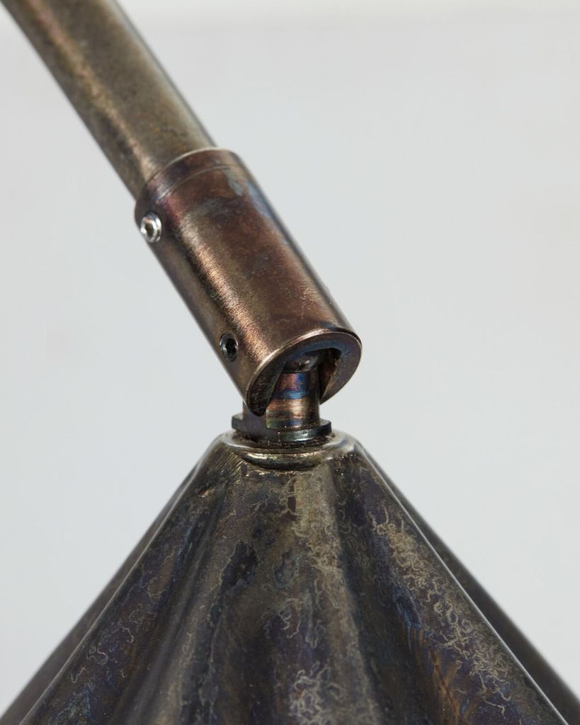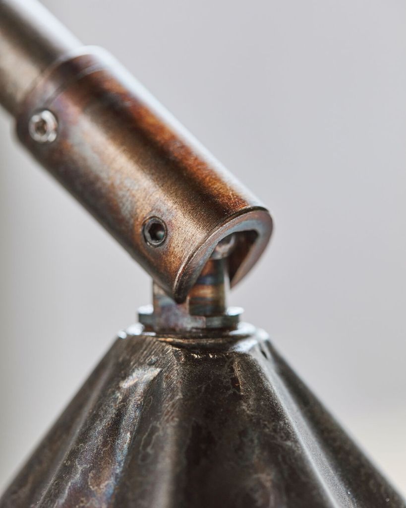 En elegant vägglampa i antik stil med mjukt vågig skärm och industriell finish. Perfekt för en stämningsfull inredning.