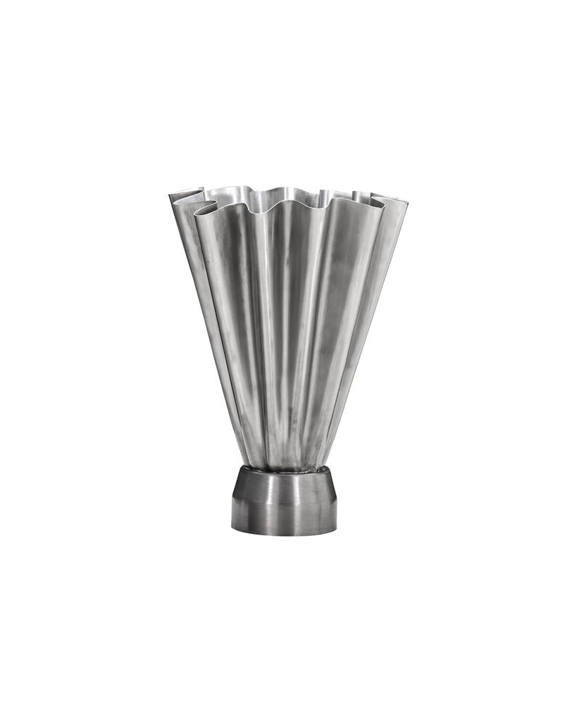 Handgjord vas i borstat silver med skulptural vågig design. Perfekt för moderna inredningar och som stilrent blickfång.