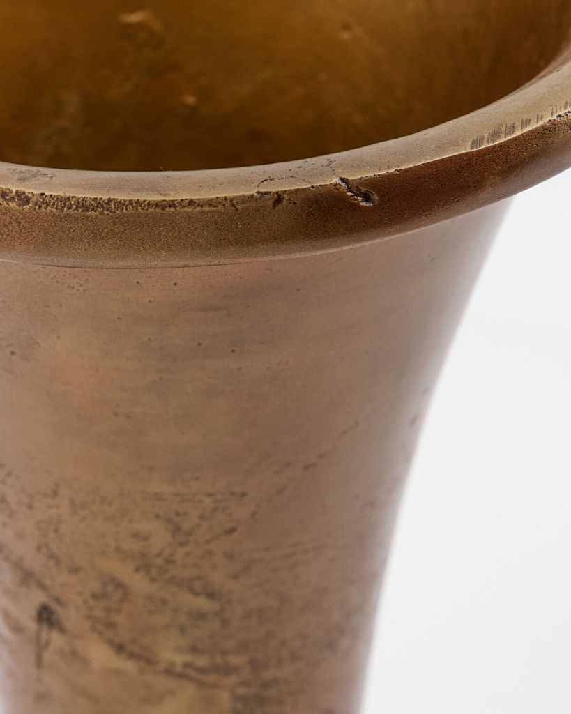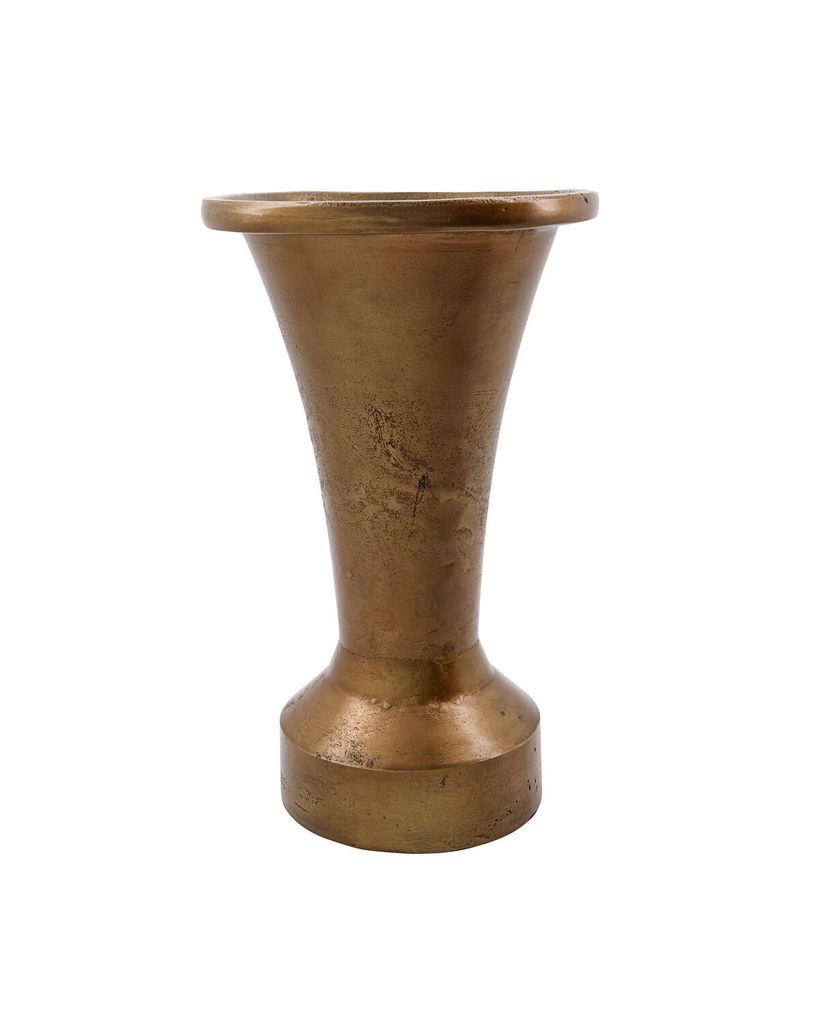 Ge ditt hem en vintageinspirerad elegans med Florist Vas från House Doctor. Denna vas i aluminium med en gyllene antik mässingsfinish och elegant utsvängda kanter är en hyllning till floristernas konstnärlighet. Placera den på ett konsolbord eller som mittpunkt på ditt middagsbord för att skapa en stilfull atmosfär. Denna vas framhäver både blomkvistar och snittblommor med sin tidlösa design. Det robusta materialet och den intricata ytan ger en känsla av årtionden av klass och förfining till ditt moderna hem.