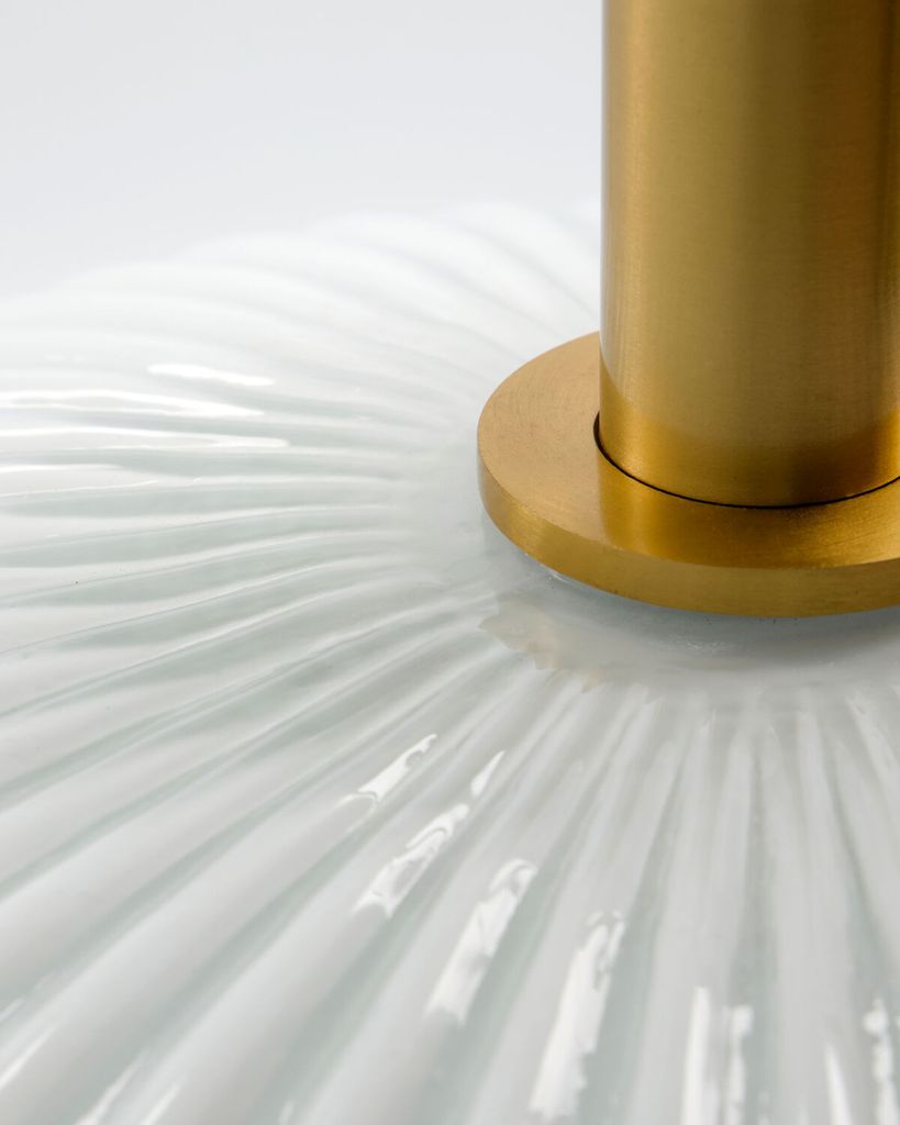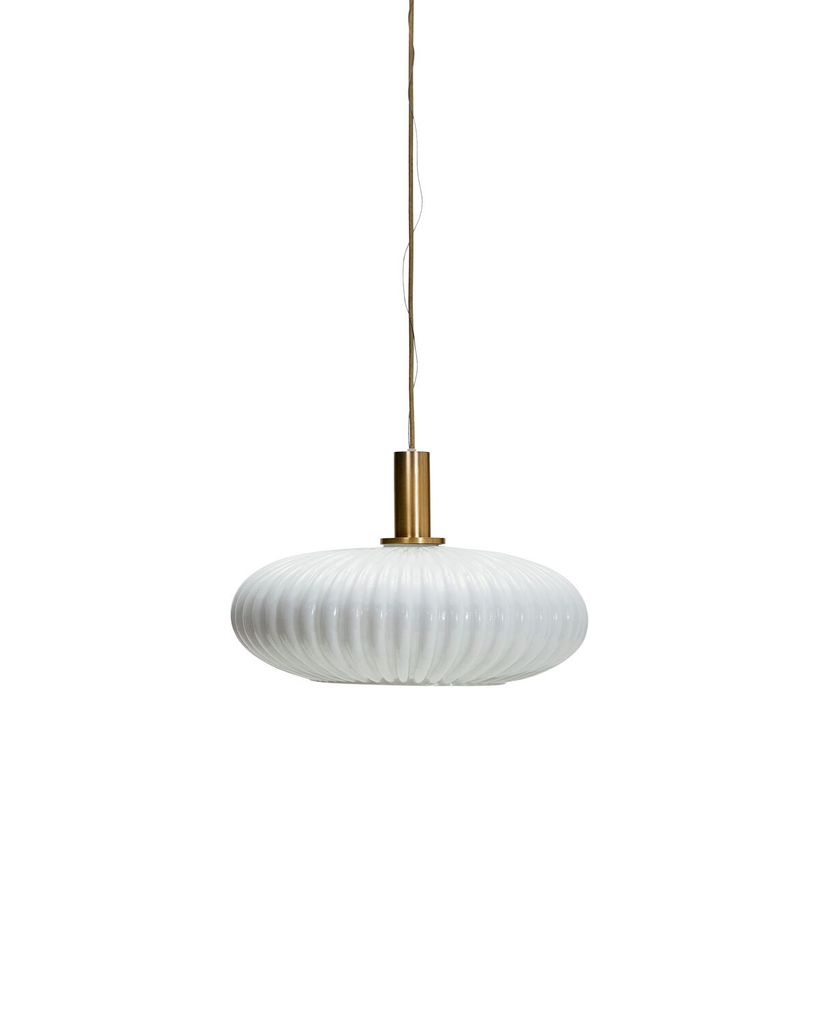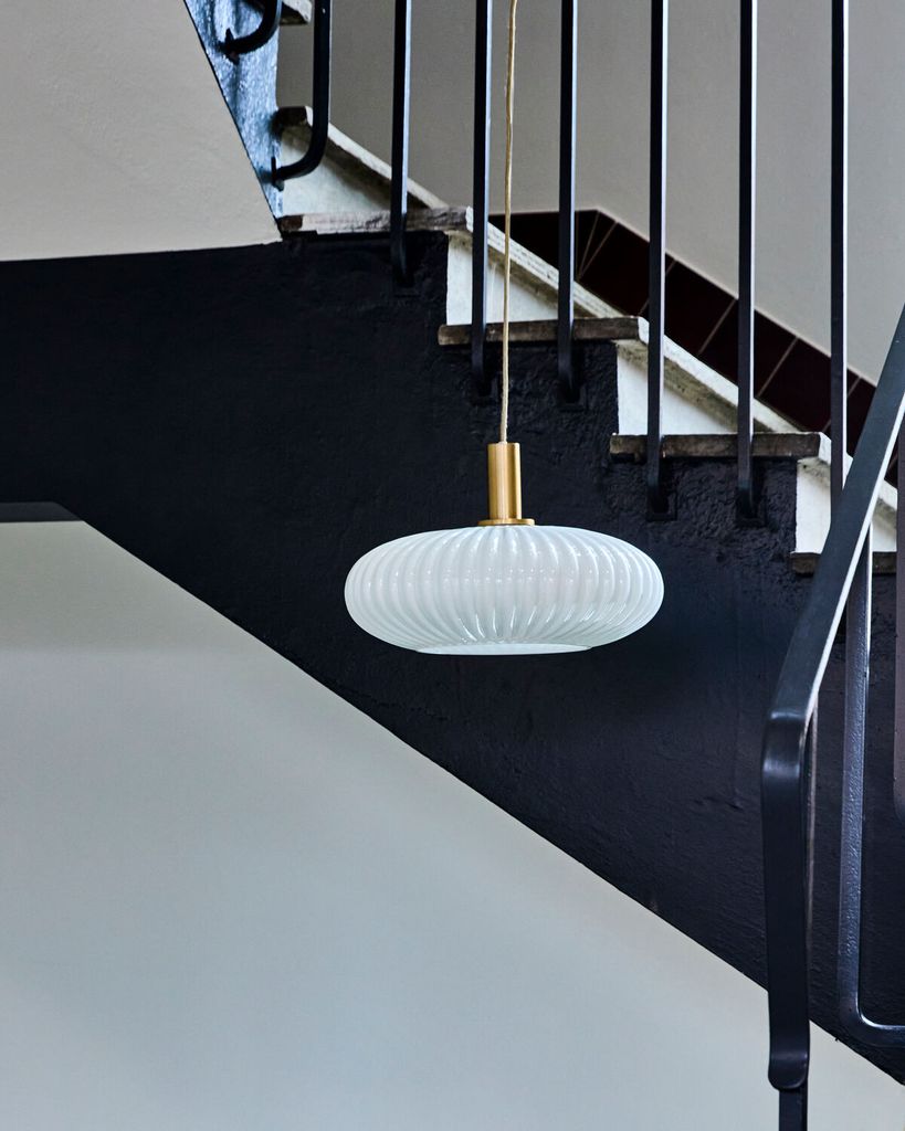 Upplev en perfekt balans mellan elegans och funktion med House Doctor Fort Lampa. Denna handgjorda pendellampa kombinerar off-white glas med detaljer i antik mässing, vilket ger en sofistikerad touch till ditt hem. De räfflade glaskuporna sprider ett mjukt och behagligt ljus, idealiskt för att skapa en inbjudande atmosfär i vilket rum som helst. Oavsett om den hänger över matbordet, i hallen eller sovrummet, kommer lampans stilrena design att dra blickarna till sig utan att överväldiga. Med kvalitetsmaterial och en tidlös estetik, blir denna lampa en prydnad i din inredning.