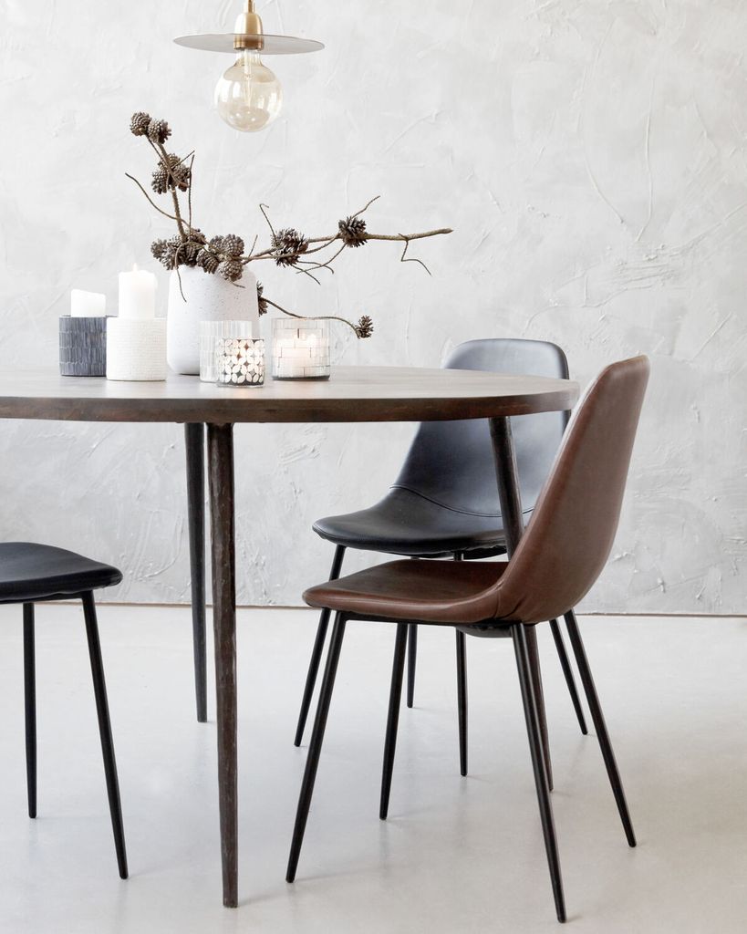 Stilren och tidlös stol i brun läderlook från House Doctor. Passar lika bra vid matbordet som i hemmakontoret.