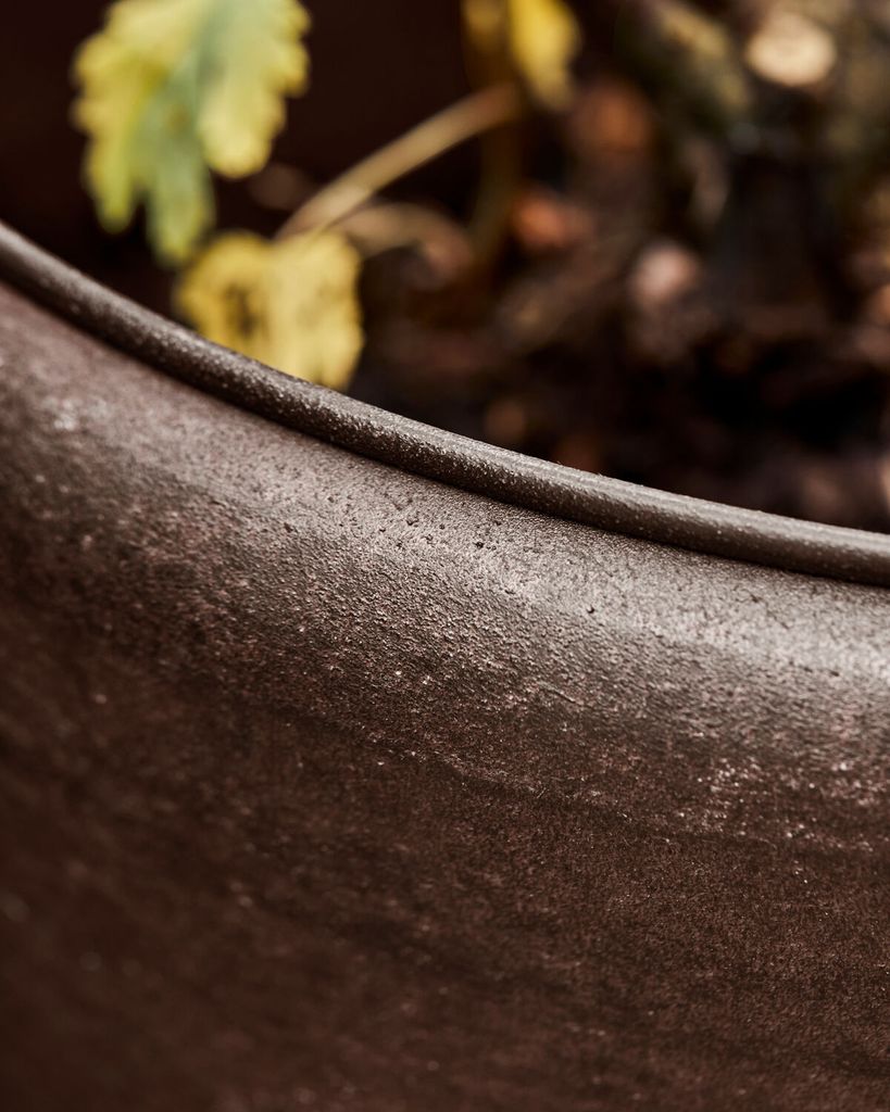 Upplev antik elegans med dessa krukor i återvunnet stål och en unik brun finish, perfekt för din utomhusmiljö.