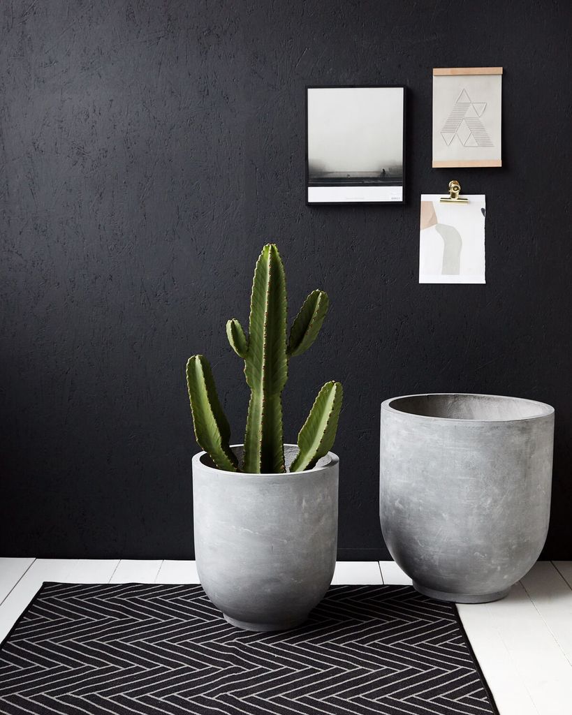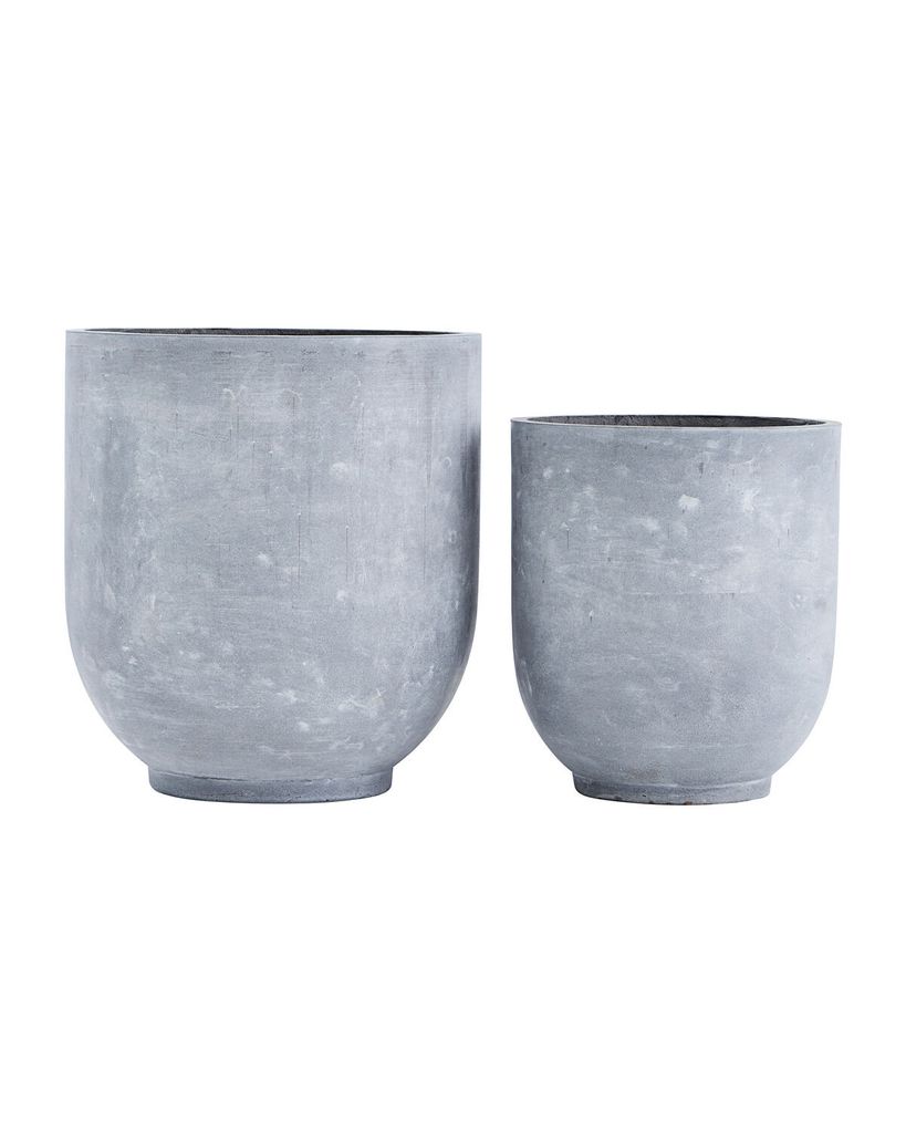 Stilrena krukor i fiberlera med betongfinish som förskönar din trädgård. Frostsäkra och eleganta för en modern stil.
