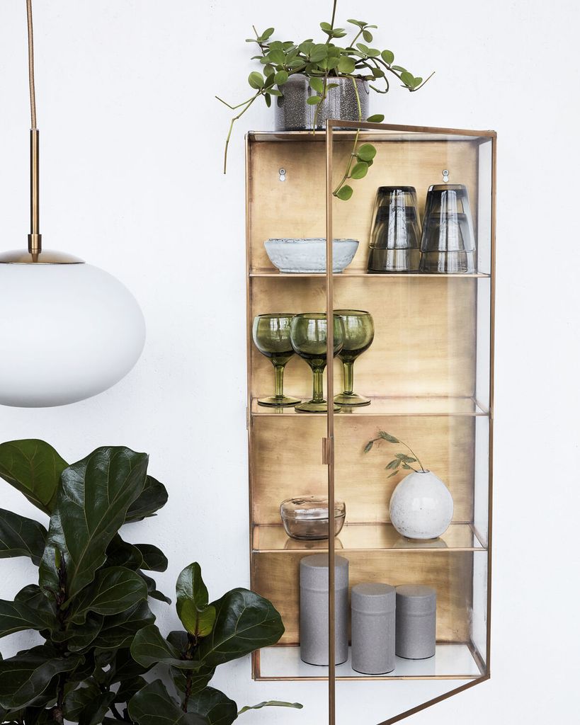 Stilfullt skåp i glas och mässing från House Doctor. Perfekt för att visa upp dina favoriter hemma.