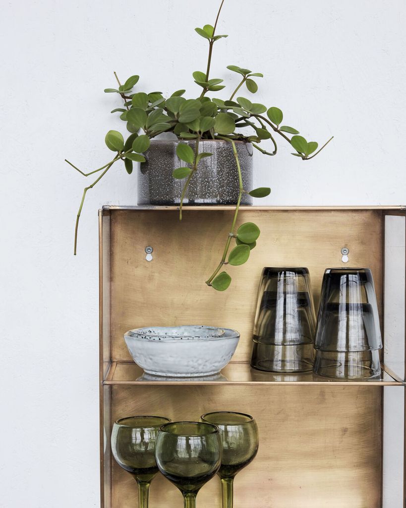 Förvandla din inredning med det eleganta Glass-skåpet från House Doctor. Detta väggskåp är tillverkat av klart glas och har en stilfull mässingsbaksida, vilket ger en distinkt och lyxig känsla. Skåpet har en glasdörr och en robust hylla, idealisk för att visa upp personliga föremål som kryddor eller vinglas, med stil. Den varma mässingsfinishen skapar en iögonfallande kontrast mot ditt hem och tillför massor av personlighet och elegans. Lätt att rengöra med en torr trasa, vilket gör det både praktiskt och estetiskt tilltalande.