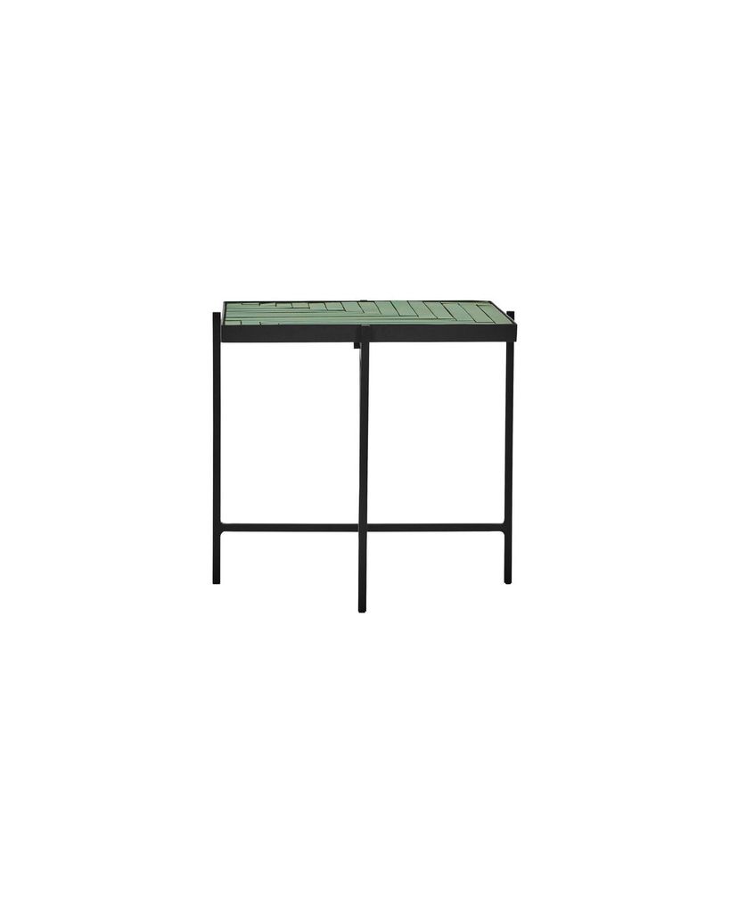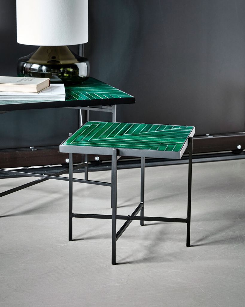 Ge ditt hem elegans med detta unika sidobord i grön keramik och svart järn, perfekt för stil och funktion.