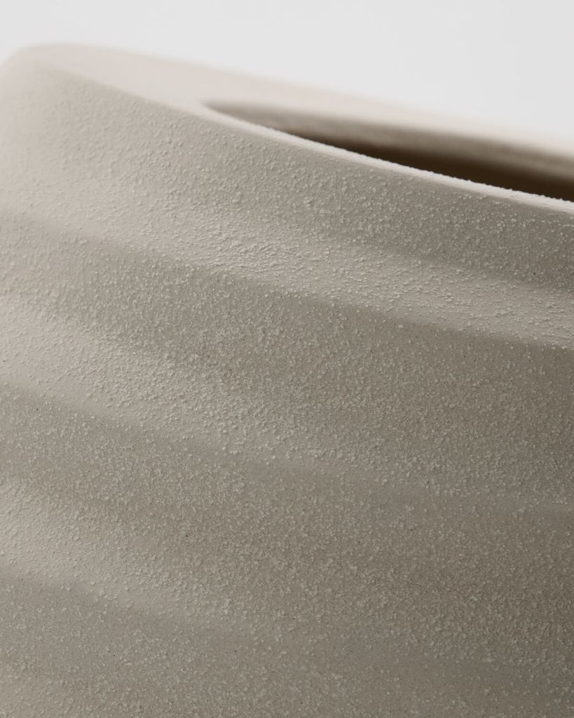 Handgjord kruka med elegant asymmetri och räfflad yta, perfekt för att tillföra en naturlig känsla.