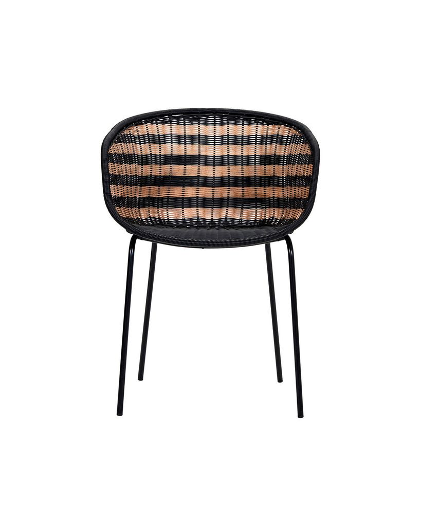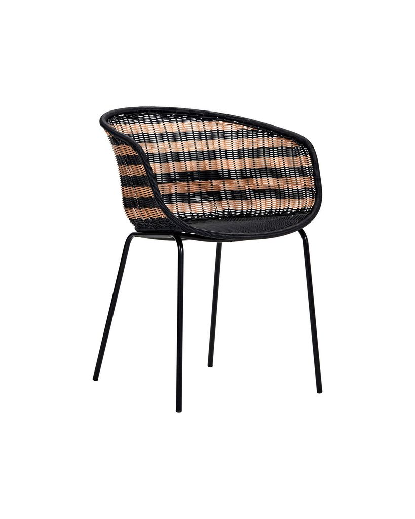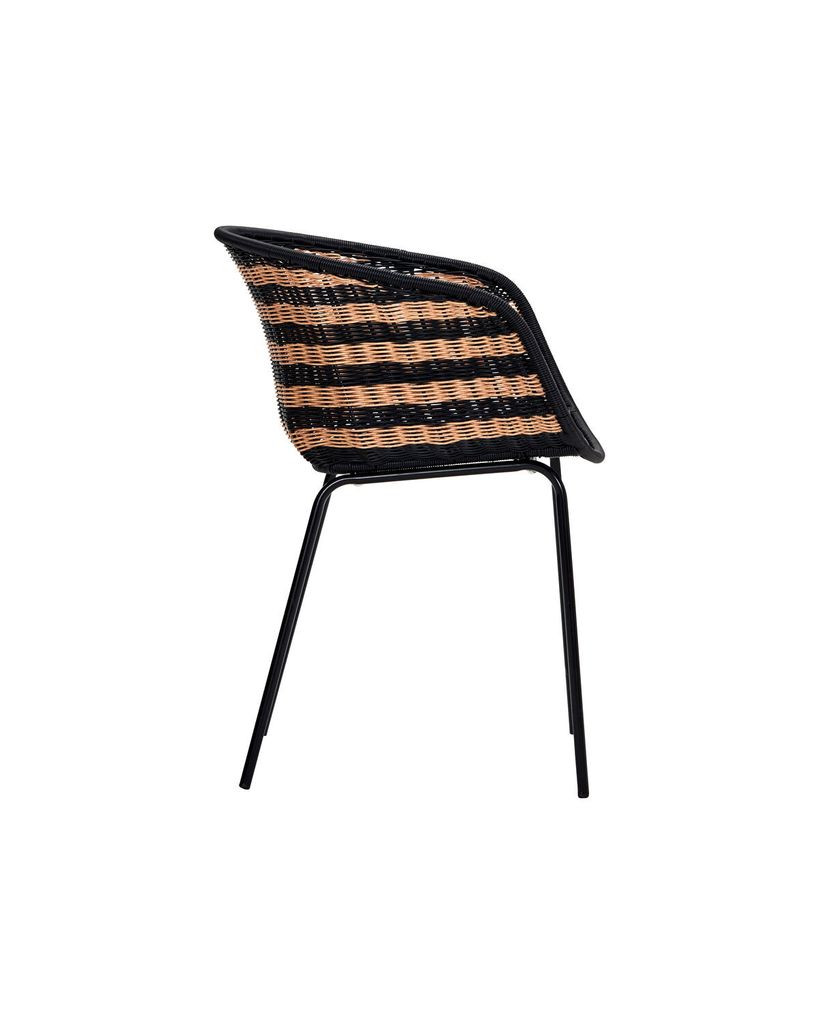 Förnya ditt hem med House Doctor Hapur Stol i en sofistikerad natur/svart design. Den vackra vävda strukturen av polyeten och de robusta benen i svart järn ger en perfekt kombination av stil och hållbarhet. Det randiga mönstret skapar en visuell intressepunkt, medan stolens form erbjuder både komfort och ett modernt uttryck. Placera den i ditt vardagsrum eller på uteplatsen och njut av dess mångsidighet. Hapur Stol är inte bara ett sittmöbel, utan också ett konstverk som adderar en touch av skandinavisk elegans till ditt hem.