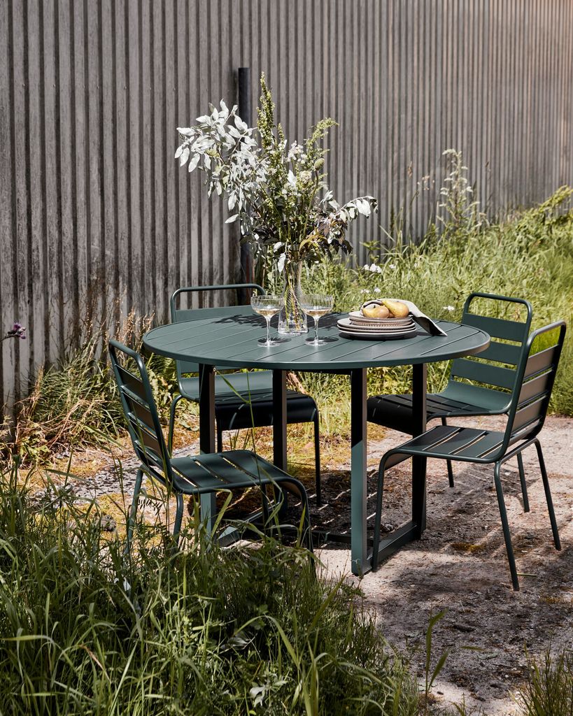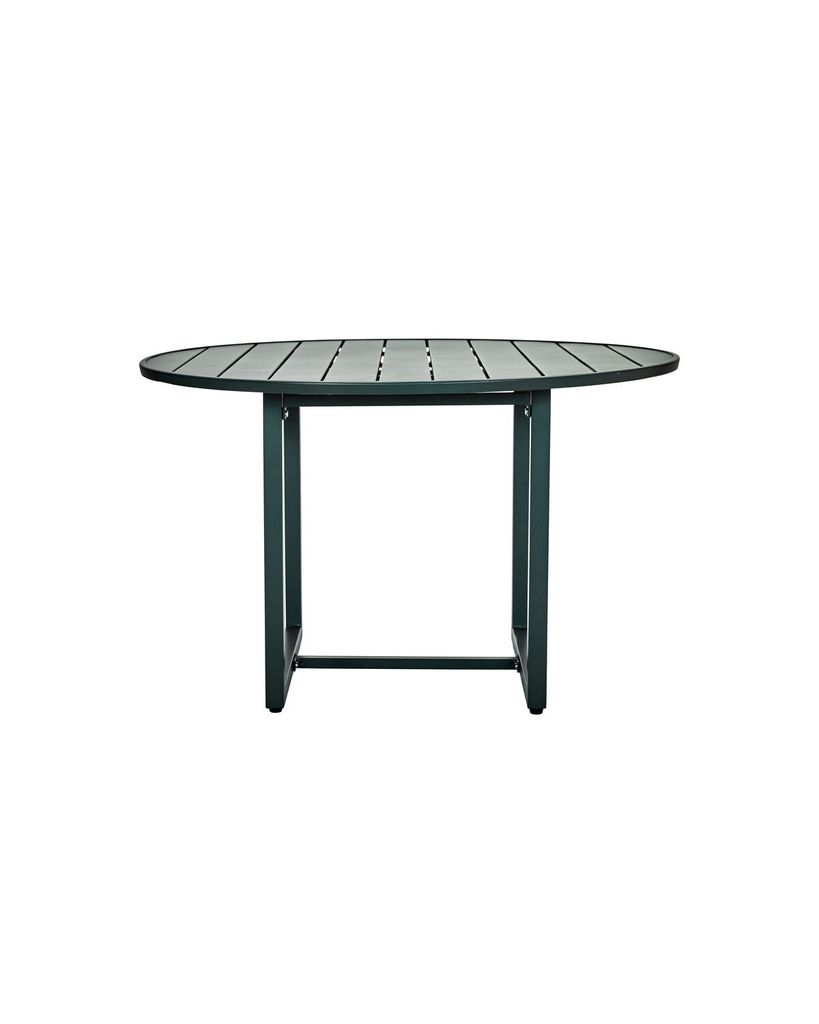 House Doctor Helo Bord i en elegant mörkgrön nyans är den perfekta möbeln för din uteplats. Med sin runda form och sofistikerade design skapar det en inbjudande atmosfär för trevliga samtal och sammankomster. Den matta pulverlackeringen inte bara förbättrar bordets estetiska tilltal utan säkerställer också dess långvariga hållbarhet. Tillverkad för att motstå väder och vind, detta bord är både funktionellt och stilrent. Kombinera det med stolar från samma serie för en komplett look som förhöjer din utomhusmiljö.