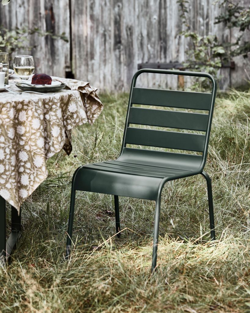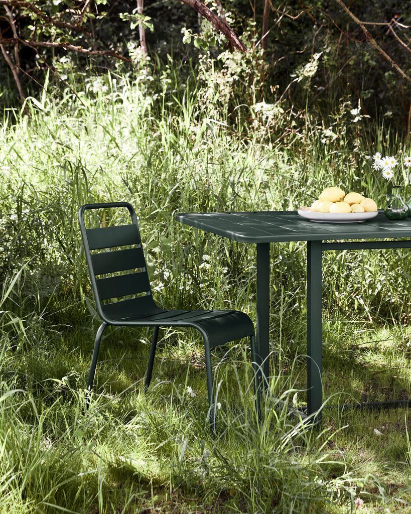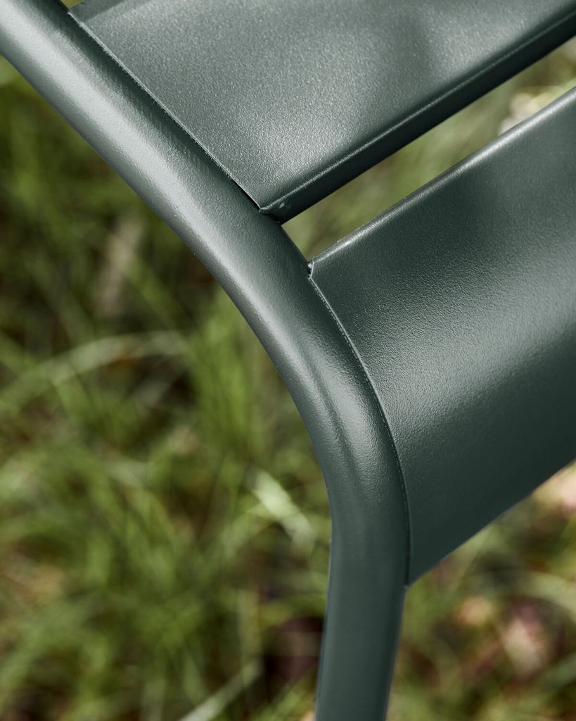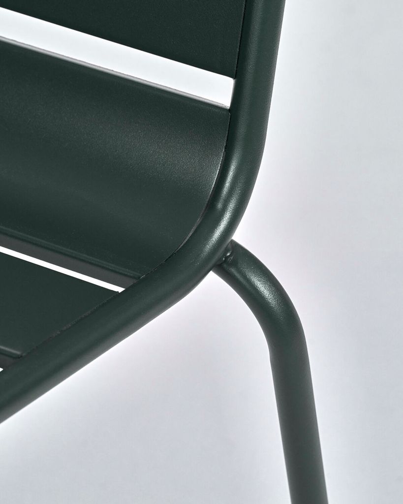 Helo-stolen ger din uteplats en modern touch med sin eleganta, mörkgröna järnkonstruktion och exklusiva design.