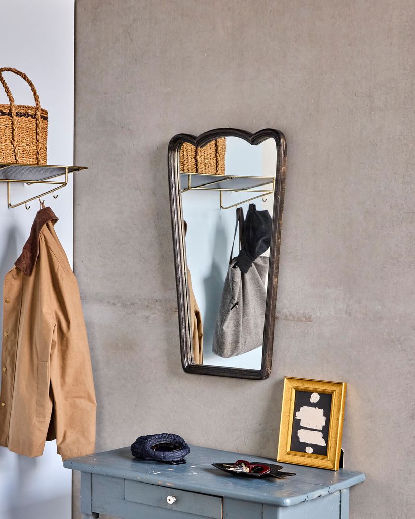 Ge ditt hem en touch av elegans med House Doctor Jamp Svart Spegel. Den handgjorda ramen i svartbetsad mangoträ framhäver spegelns unika design och ger en sofistikerad känsla. De tre vackra bågarna upptill skapar en visuell harmoni som drar ögat till sig. Varje spegel är ett unikt hantverk, vilket gör den till ett fantastiskt statement i din hall eller ditt sovrum. Den robusta konstruktionen och den stilrena finishen garanterar en tidlös och hållbar dekorationsdetalj i ditt hem. Lyft rummets karaktär och djup med denna stilfulla spegel från House Doctor.