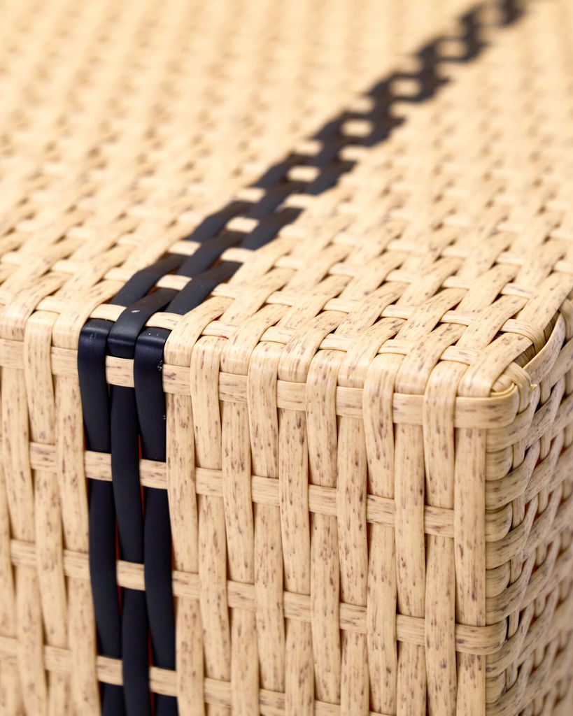 Ge ditt hem en modern touch med House Doctor Jass Fåtölj i natur och svart. Den geometriska formen tillsammans med de vävda svarta linjerna skapar en djärv, stilren och bekväm sittplats. Fåtöljen är tillverkad för att passa lika bra inomhus som på uteplatsen, och den kräver ingen montering vilket gör den lätt att placera var som helst. Den naturliga färgtonen kombinerat med den svarta accenten gör denna fåtölj till ett tidlöst tillskott i ditt hem. Skötseln är enkel; torka bara av med en fuktig trasa vid behov.