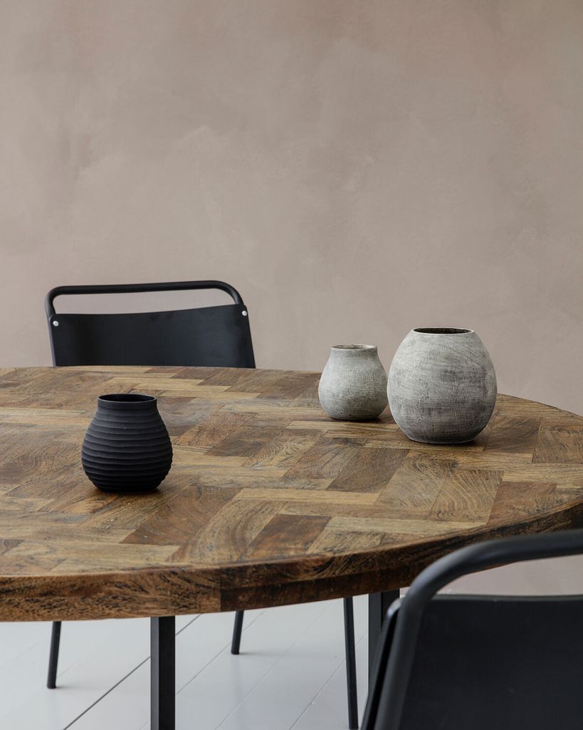 Upplev hur House Doctor Kant Matbord Natur förvandlar ditt hem med sin eleganta design och unika materialkombination. Bordsskivan, tillverkad av vackert strukturerat trä, erbjuder en varm och inbjudande känsla, medan de svarta metallbenen ger en stilren och modern touch. Den runda formen främjar gemenskap och närhet, perfekt för såväl middagar som samtal. Med sina mörka nyanser skapar Kant en slående kontrast mot ljusa väggar och kompletterar en enkel, modern inredning. Placera detta bord i ditt hem för att skapa en naturlig samlingspunkt där minnen och historier delas.
