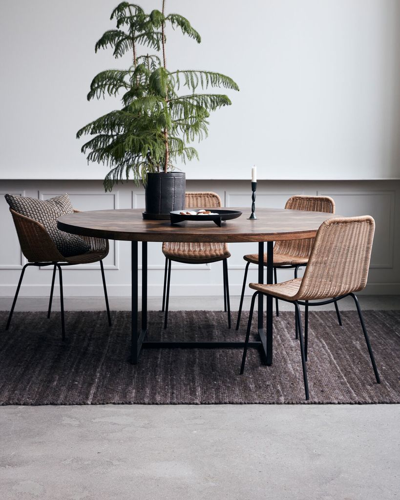 Skapa en inbjudande atmosfär i ditt hem med Kant Matbord från House Doctor. Detta stilfulla runda bord kombinerar en robust stålram med en vacker bordsskiva i mangoträ, där en unik fiskbensdesign framhäver de naturliga bruna nyanserna. Bordet blir en central plats för både festliga och vardagliga stunder, och dess tidlösa stil säkerställer att det alltid känns aktuellt. Oavsett om du samlar familjen för middag eller en avkopplande fika, ger Kant en känsla av elegans och värme till ditt hem.