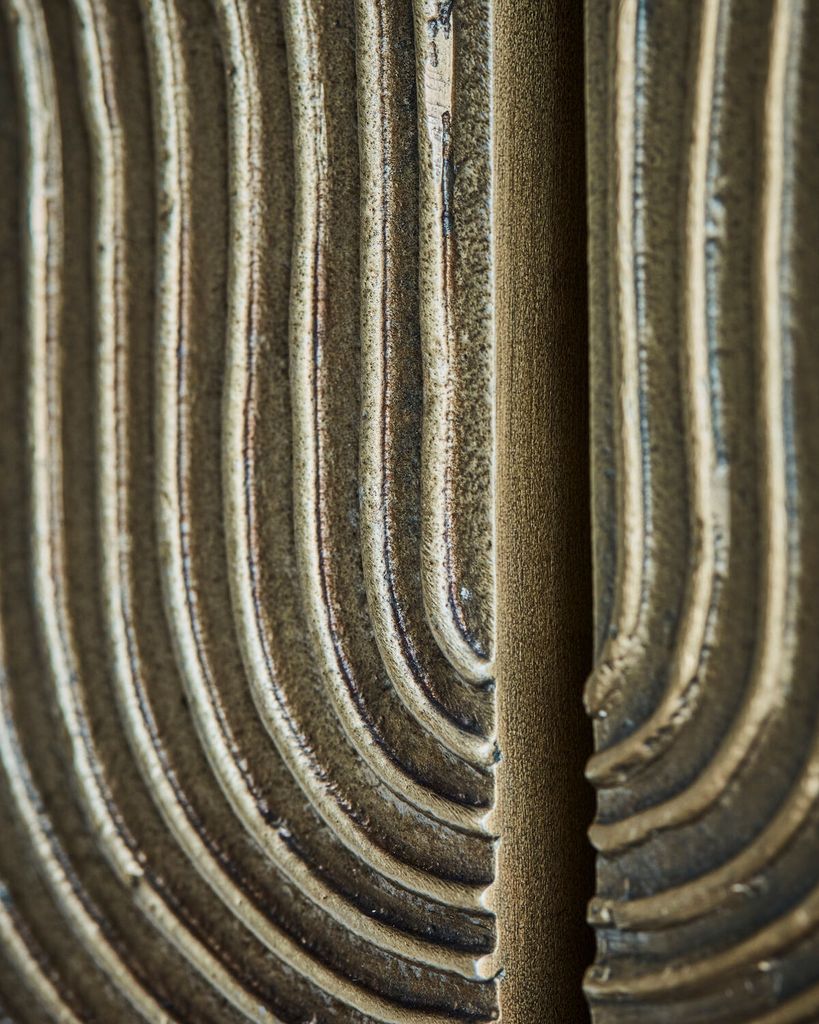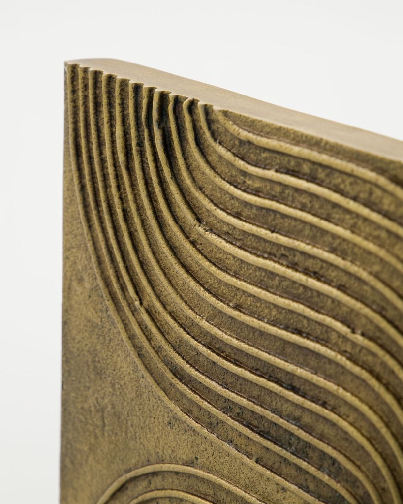 Förvandla ditt hem med House Doctors eleganta väggkonst i antik mässing. Dessa handgjorda plattor är skapade av hållbart aluminium och ger en känsla av tidlös elegans. Det organiska reliefmönstret gör att du enkelt kan kombinera flera plattor för en sammanhängande och imponerande väggdekoration. Den antika mässingsfinishen reflekterar ljus på ett subtilt sätt, vilket skapar en varm och inbjudande atmosfär. Perfekt för den som vill ge sitt hem en konstnärlig touch.