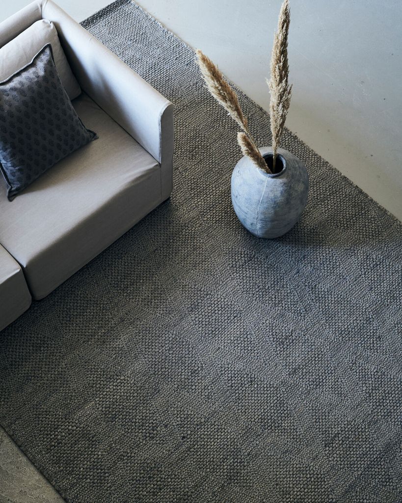 Upptäck Mara mattan från House Doctor, en stilren och hållbar matta i grått med diskret diamantmönster.