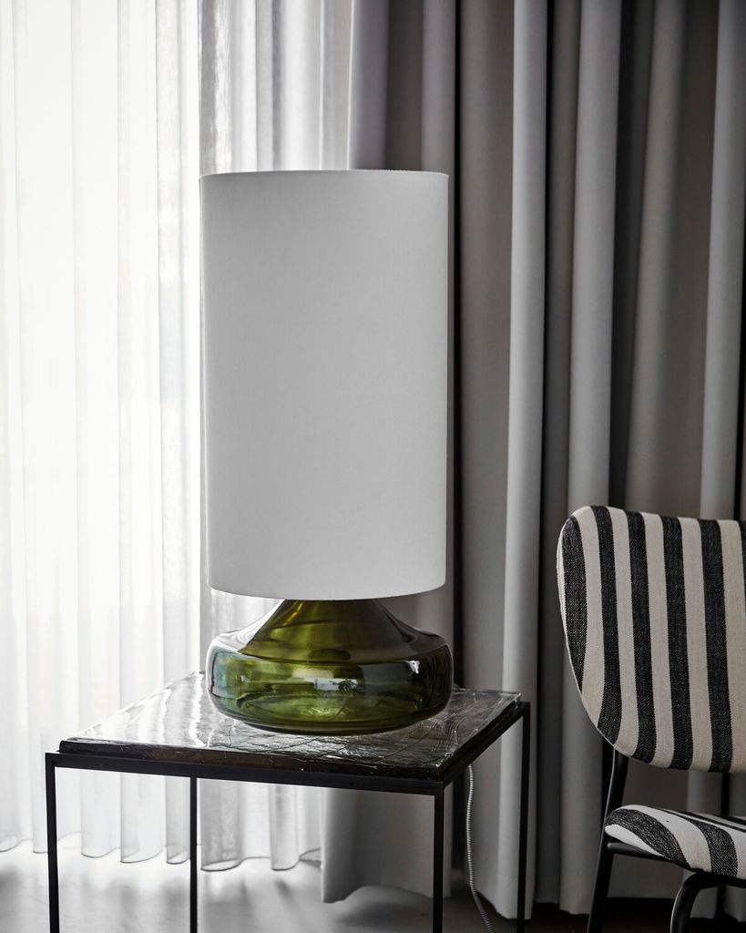 Skapa en sofistikerad atmosfär i ditt hem med House Doctor Matte Bordslampa. Denna eleganta lampa har en slående grön glasbas som står i vacker kontrast till den ljusa offwhite skärmen. Med sin tidlösa design blir den en central del i varje rum. Lampan utrustad med en 2 meter lång textilkabel och E27 fattning, vilket ger flexibilitet och enkel installation. Den subtila glansen i glaset och den mjuka texturen i skärmen skänker en fräsch känsla av modernitet och stil. Perfekt för att tillföra en touch av elegans och fräschhet till vilket rum som helst.