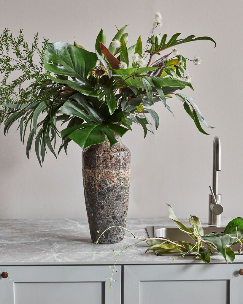Ge ditt hem en unik konstnärlig touch med House Doctor Maya Vas i antikbrun stengods. Denna handgjorda vas har en distinkt, vacker glasyr som varierar i nyanser av brunt och svart, vilket ger varje exemplar sin egen personlighet. Som ett konstverk i sig eller som ett elegant tillskott för avklippta grenar, säkerställer den individuella finishen att ingen vas är den andra lik. Den robusta stengodsdesignen kombinerar hållbarhet med estetik, vilket gör den till en bestående favorit i ditt hem.
