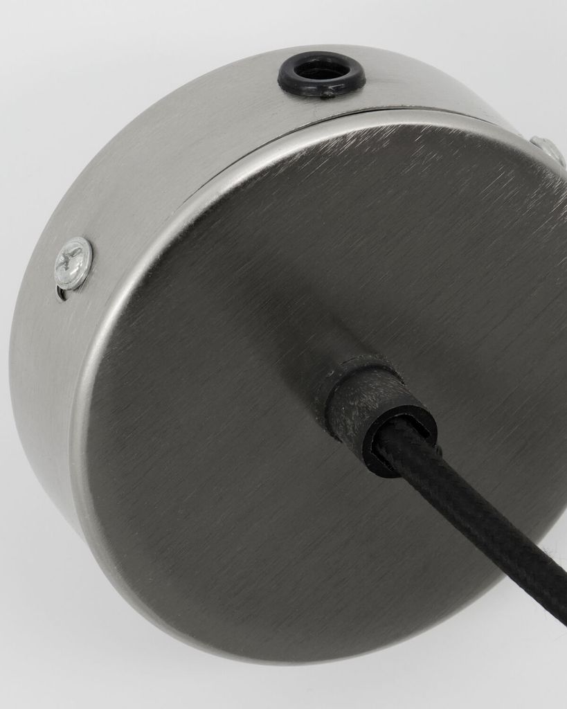 Placera den i sovrummet, vardagsrummet eller hallen för att skapa en varm och välkomnande miljö. Den robusta och eleganta takfästet i borstad metall ger en extra dimension av stil till din belysning.