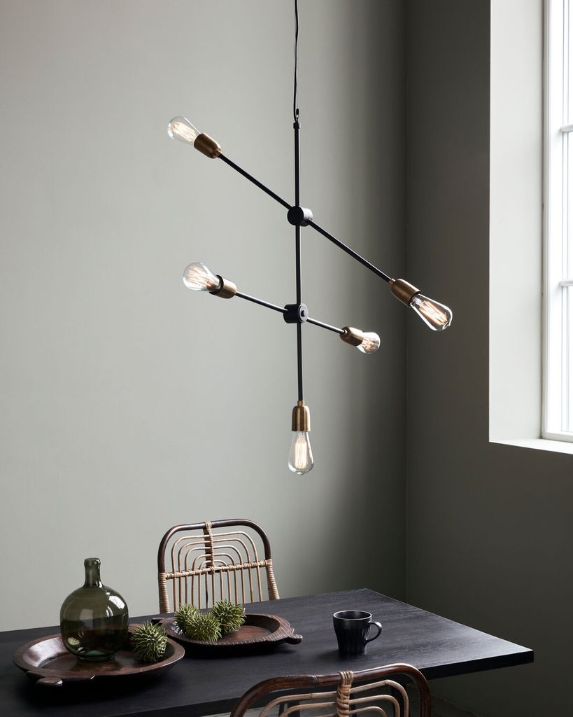Skapa ett elegant fokus i ditt hem med den geometriska och skulpturala Molecular-lampan i svart järn och mässing.