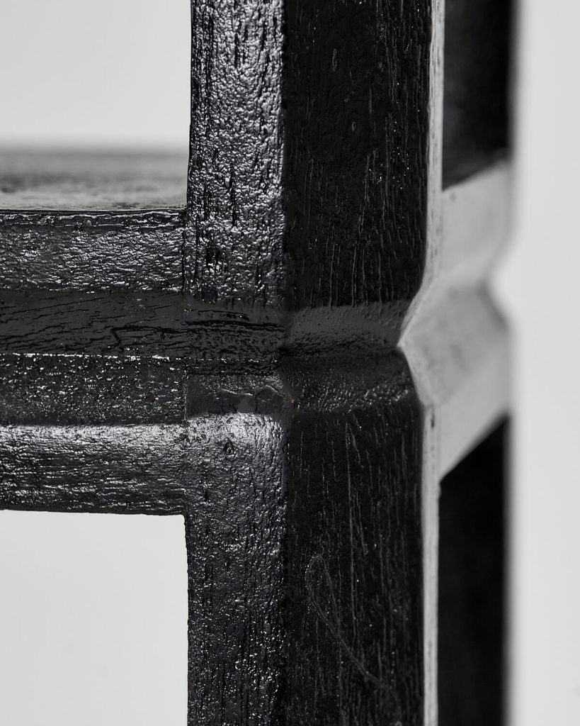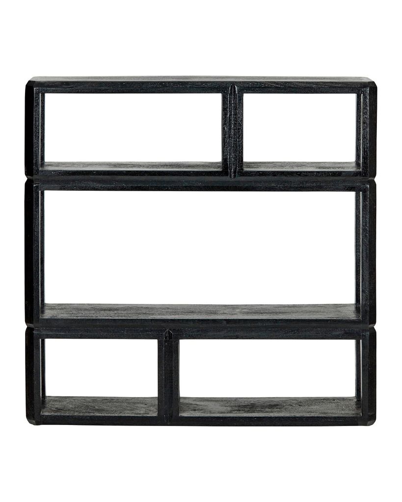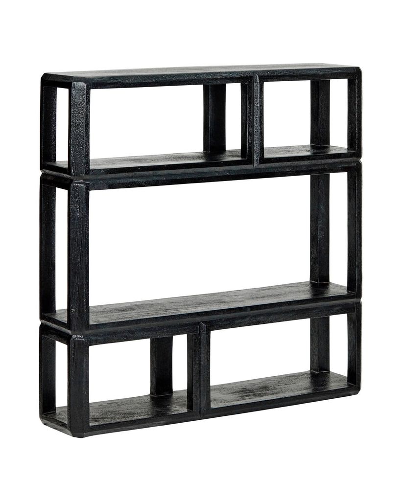 Förhöj ditt hem med en stilren och bohemisk väggmonterad hylla i svart borstat mangoträ, perfekt för dina favoritsaker.