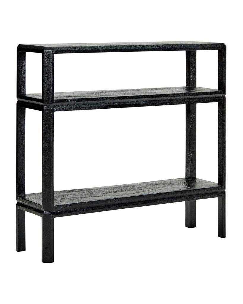 House Doctor Mono Konsol Svart är tillverkat av svart borstad mangoträ, vilket ger en elegant och bohemisk känsla. Dess unika design och släta finish gör det till ett stilfullt tillskott i varje hem. Konsolbordet är idealiskt för smala utrymmen och kan enkelt komplettera vägghyllor i samma serie. Det erbjuder två hyllplan med en maxvikt på 5 kg per hylla, vilket ger både stil och funktion. Bordets kompakta storlek och eleganta utseende gör det perfekt för att förbättra ditt utrymme, oavsett var du väljer att placera det.