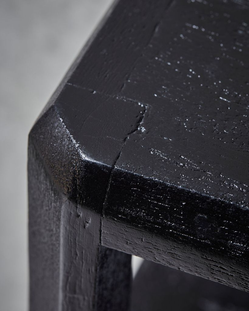 Elegans och funktion möts i detta svarta konsolbord i borstad mangoträ. Dess kompakta design passar perfekt i smala utrymmen och tillför en stilren touch.