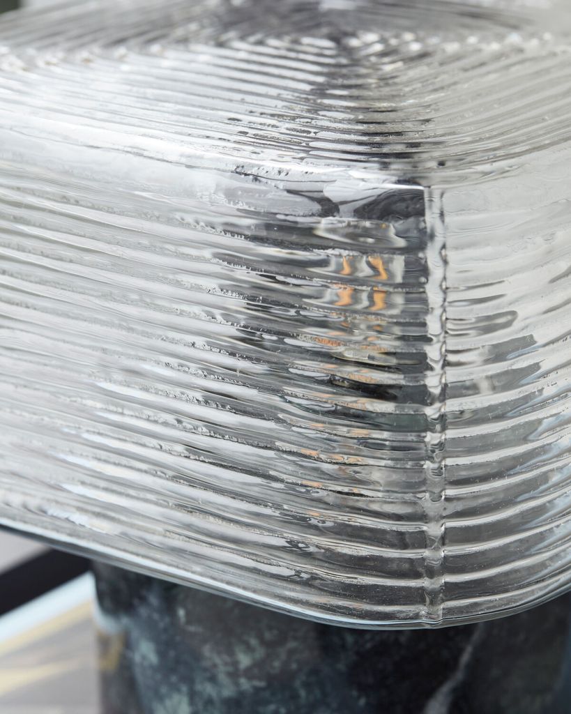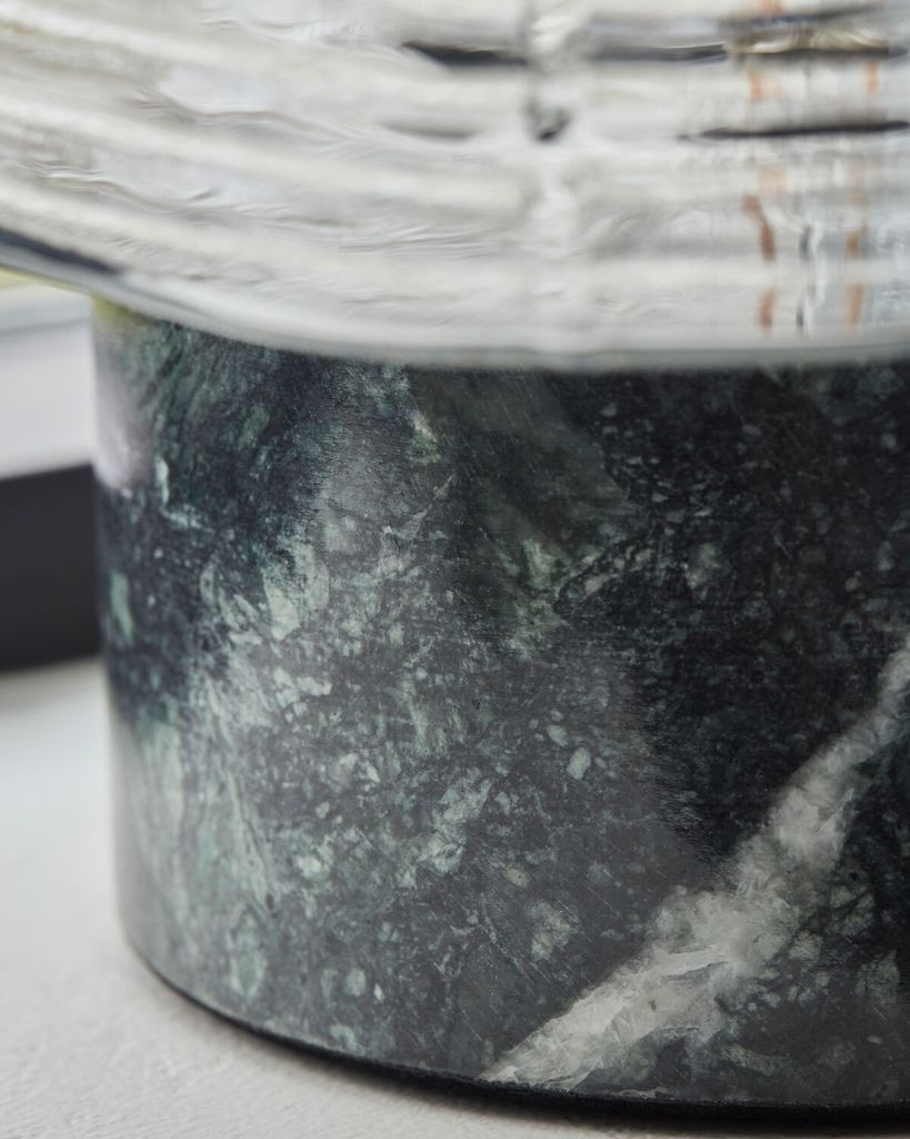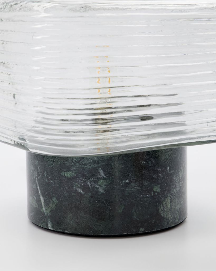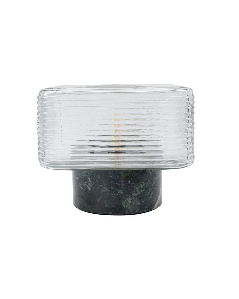 Neat bordslampa från House Doctor kombinerar grön marmor och ribbat glas för en sofistikerad, modern design som förvandlar din interiör.