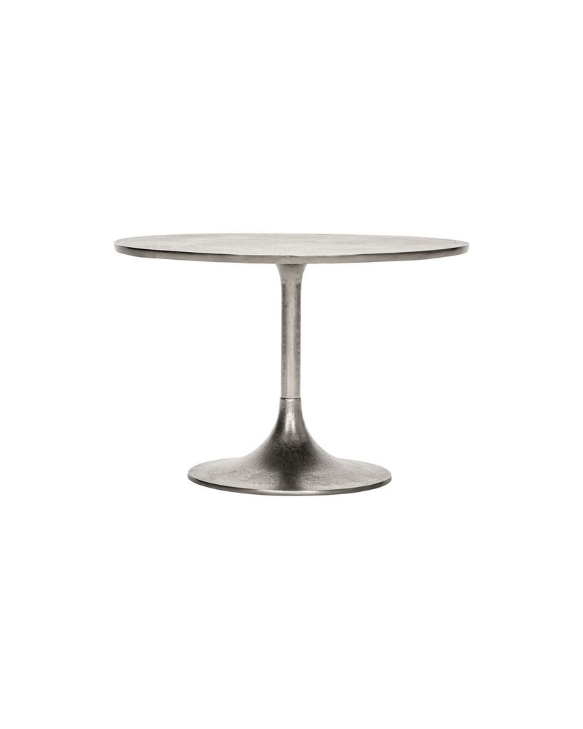 Stilrent sidobord i blank silverfinish som kombinerar modern minimalism med hållbar design i aluminium.