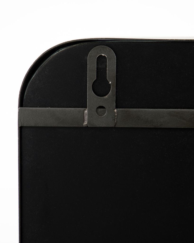 En elegant spegel med svart antik stålram och integrerad hylla, perfekt för små utrymmen som behöver stil och praktisk funktion.