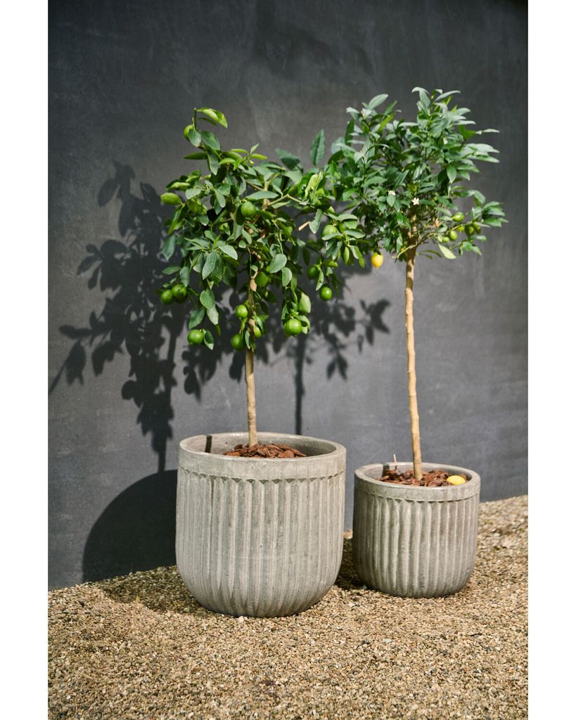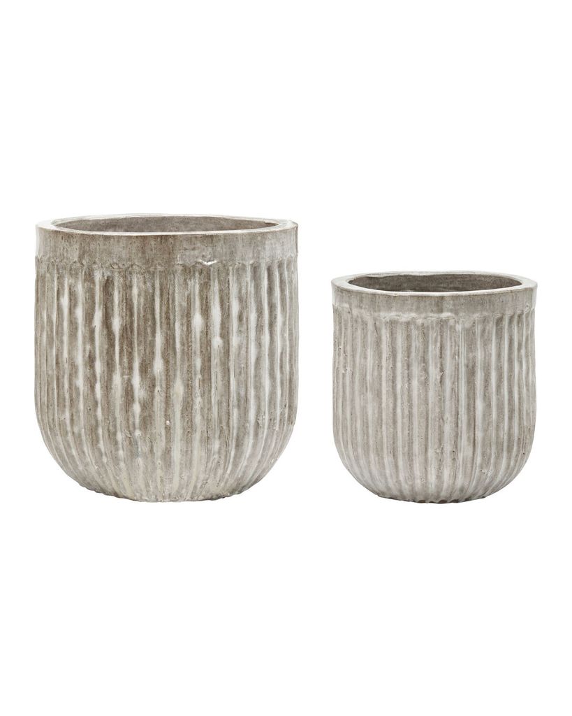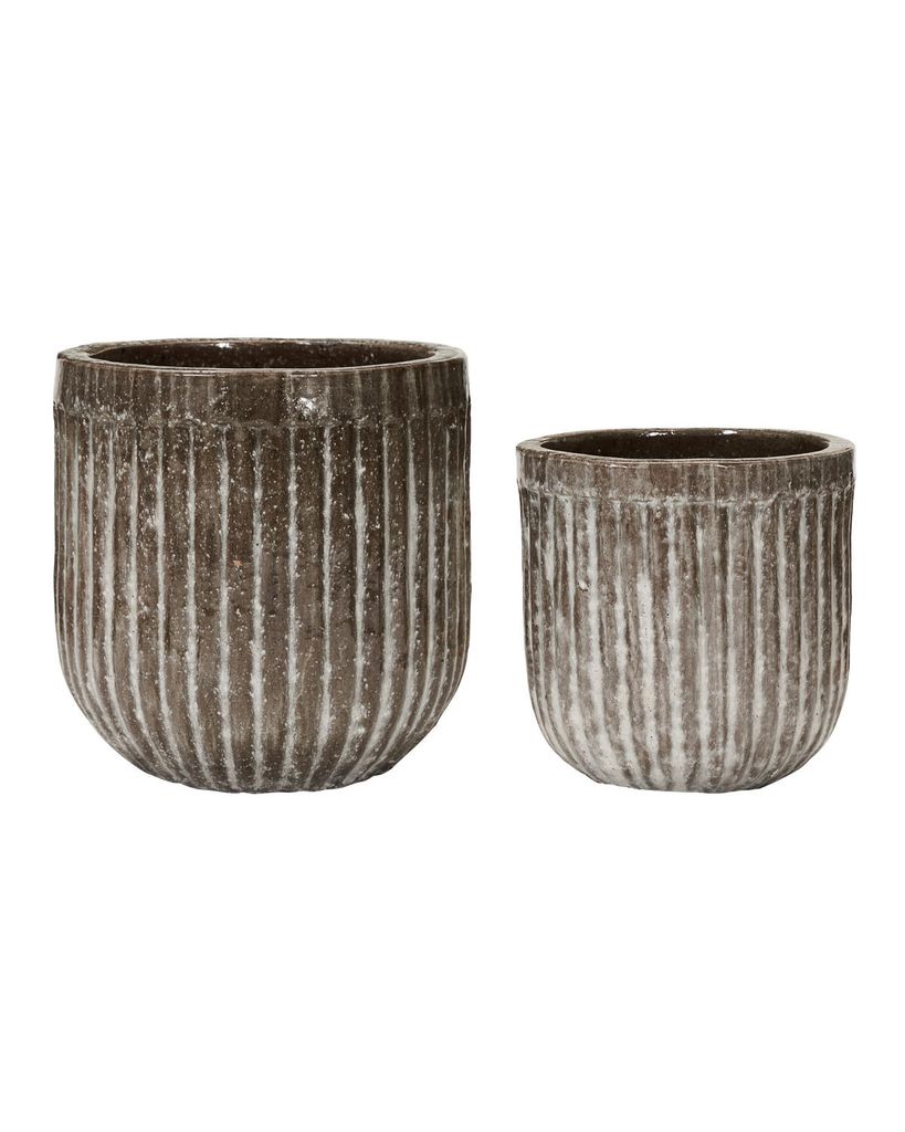 Uppdatera din trädgård med den eleganta House Doctor Pharao Blomkruka. Dessa handgjorda lergodskrukor finns i två storlekar, vilket ger en stilfull variation. Med sina vertikala spår och den reaktiva glansen i olika nyanser av grått och brunt, ger de varje utrymme en naturlig skönhet. Krukorna tål temperaturer ner till -20°C och är försedda med dräneringshål för optimal växtvård. Notera att färg och finish kan variera något, vilket bidrar till deras unika charm.