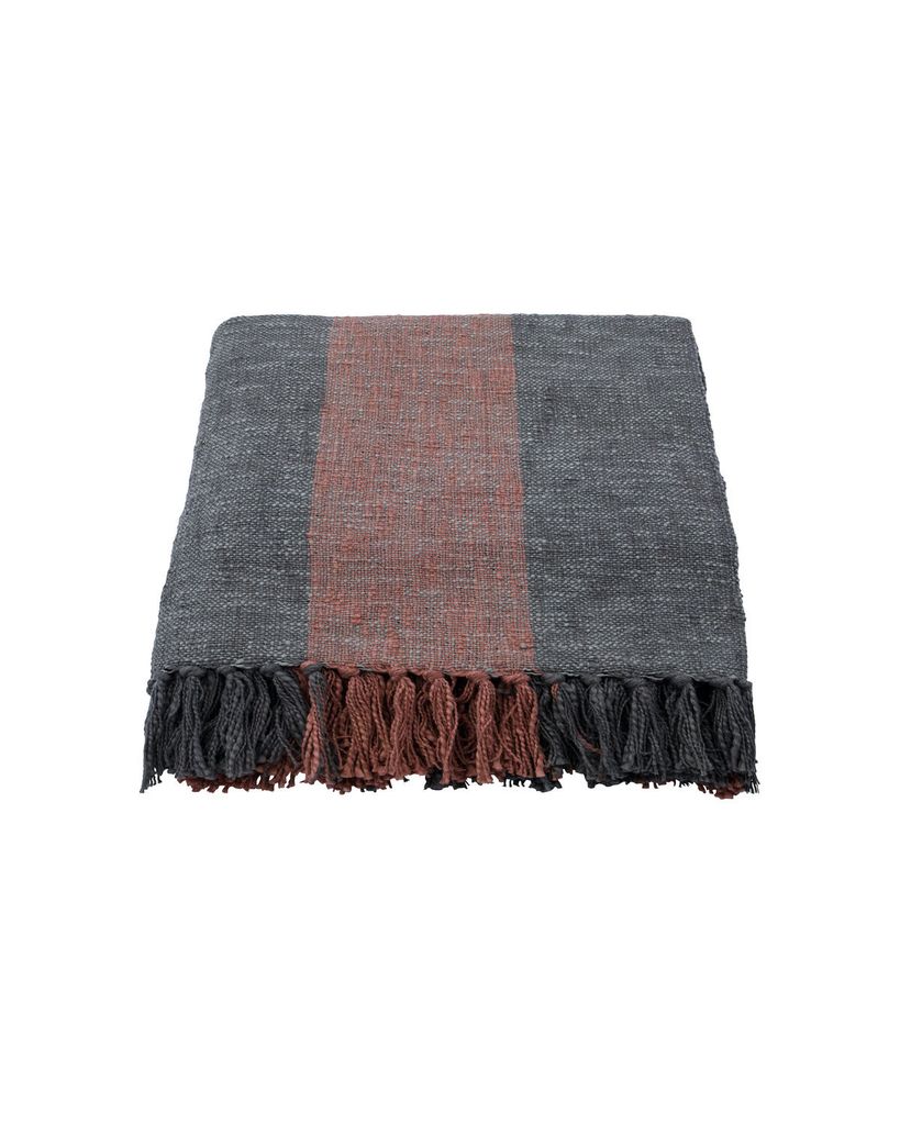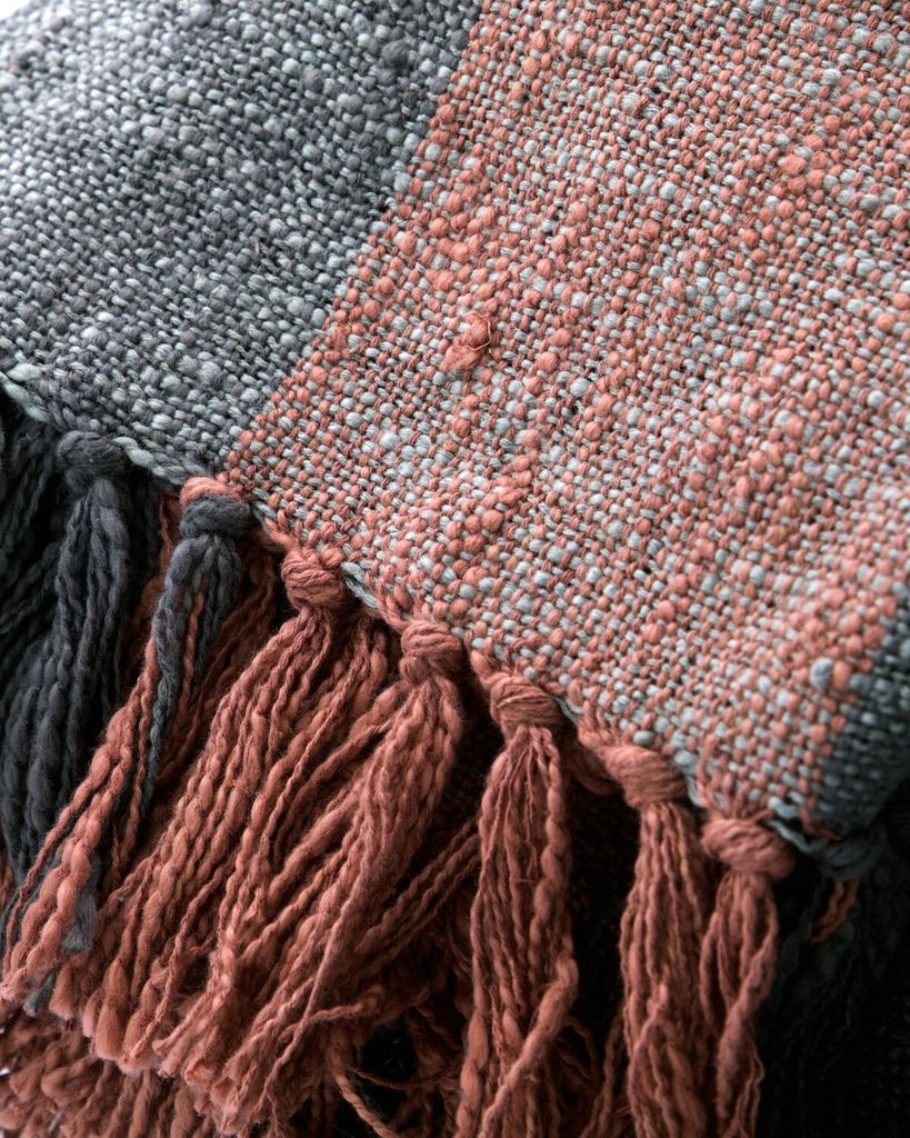 Handvävd pläd av bomull i khaki och bränd röd. Skapar en tidlös och personlig stil.