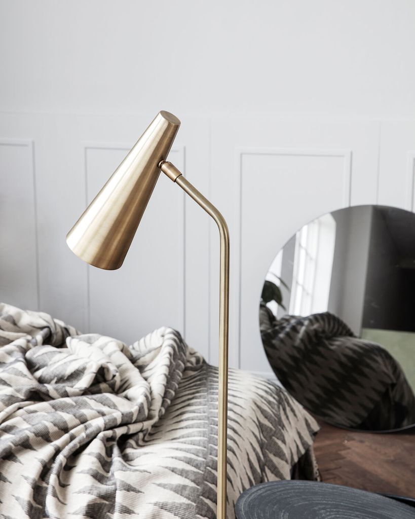 House Doctor Precise golvlampa i mässing är en stilren och funktionell lampa som förhöjer inredningen i vilket rum som helst. Tillverkad av högkvalitativt järn och mässing, erbjuder denna lampa en varm och inbjudande belysning som kompletterar dess eleganta design. Med en höjd på 124 cm är den idealisk för att skapa en mysig läshörna eller för att ge extra ljus i vardagsrummet. Lampans mässingsfinish och avskalade design skapar ett sofistikerat och modernt uttryck. Den levereras med en 3,5 meter lång sladd och kräver en E14, max 6W LED-lampa, som säljs separat.