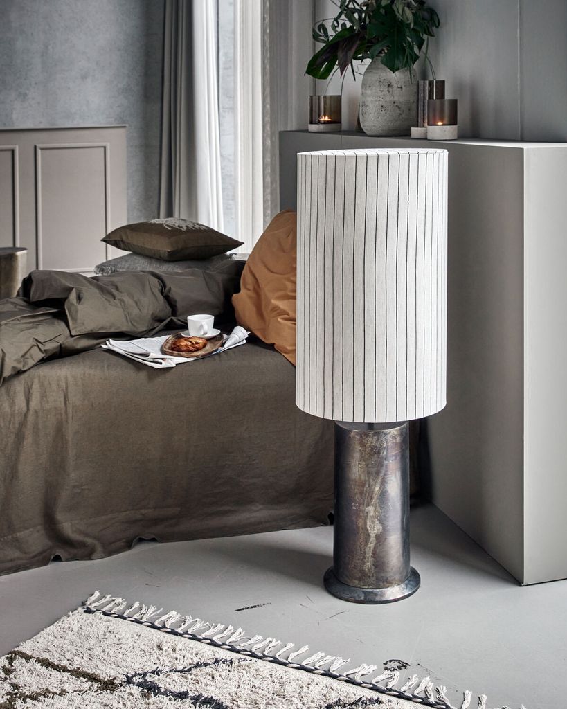 Förvandla ditt hem med den stilfulla House Doctor Rafi golvlampa. Med en solid antikbrun bas gjord av järn och en elegant skärm i offwhite med svarta ränder, blir denna lampa en iögonfallande detalj i vilket rum den än placeras. Den tre meter långa svarta tygkabeln ger flexibilitet i placering. Passar E27-glödlampor med max 40 W, vilket ger perfekt belysning utan att kompromissa med designen. En perfekt kombination av funktion och estetik för den medvetna inredaren.