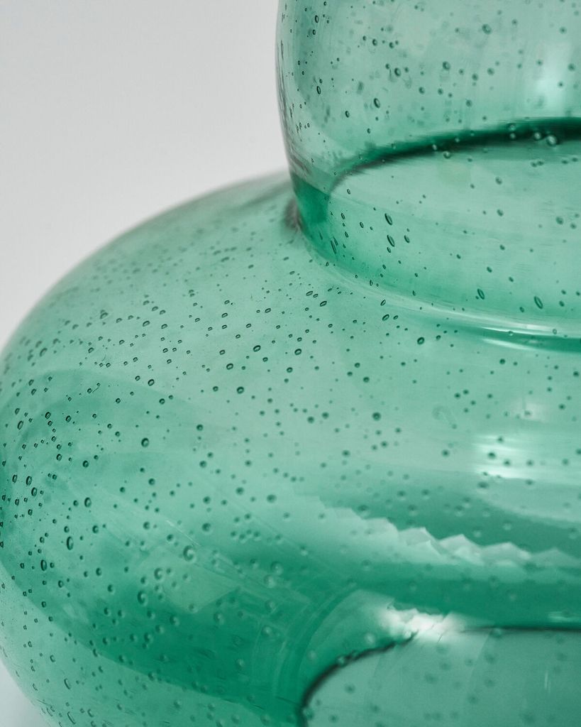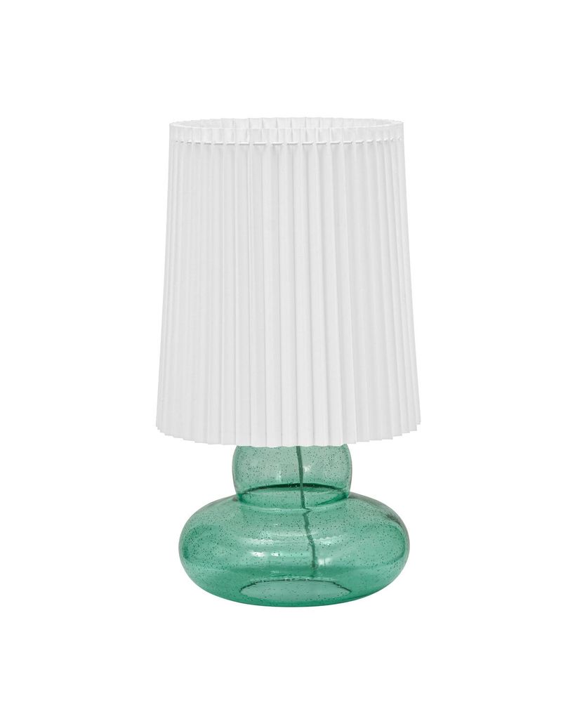 Med en stilren kombination av grön glaskropp och en klassisk veckad lampskärm förvandlar House Doctor Ribe bordslampa ditt hem till en elegant oas. Den gröna basen, dekorerad med små luftbubblor, ger ett subtilt skimmer som förstärker lampans nostalgiska charm. Den vita, veckade skärmen sprider ljuset mjukt och jämnt, vilket skapar en inbjudande atmosfär i alla rum. Placera den på ett sidobord eller en hylla för att tillföra karaktär och stil.
