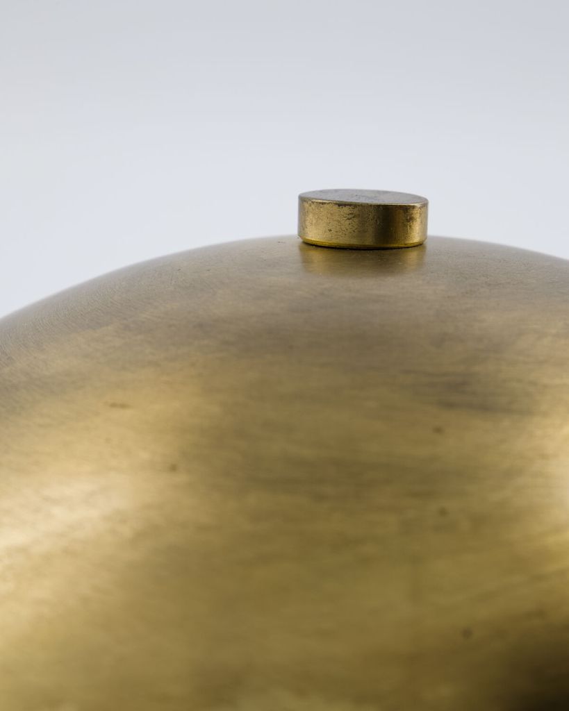 Elegant bordslampa i antik mässingsfinish med unik handgjord design och mjuk belysning.