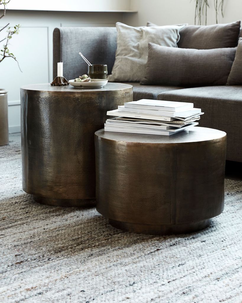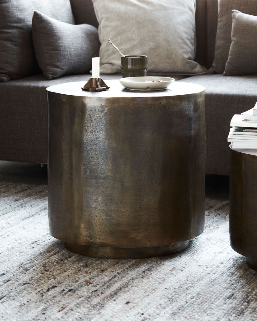 Förvandla ditt vardagsrum med det eleganta House Doctor Rota Sidobordet i antik mässing. Bordet är tillverkat i aluminium med en rik gyllene finish som fångar ljuset och skapar en varm atmosfär. Det unika, skavda utseendet ger en känsla av tidlös karaktär, medan den solida konstruktionen garanterar hållbarhet. Perfekt för att placera vid soffan som en stilfull accent eller tillsammans med andra möbler för en sammanhängande inredning. Komplettera med en matta och dina favoritdekorationer för en personlig touch. Använd bordsunderlägg för att skydda ytan och bevara dess skönhet.