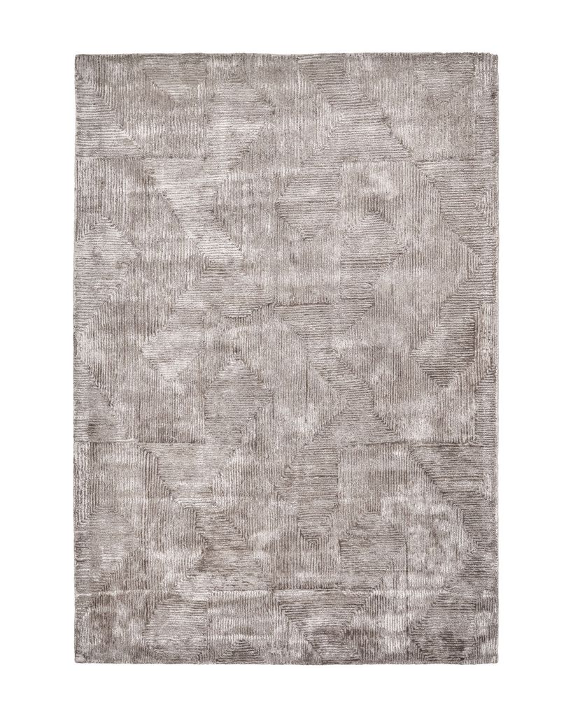 Denna sandfärgade matta med glansigt, grafiskt mönster ger en exklusiv och sofistikerad känsla till ditt hem.