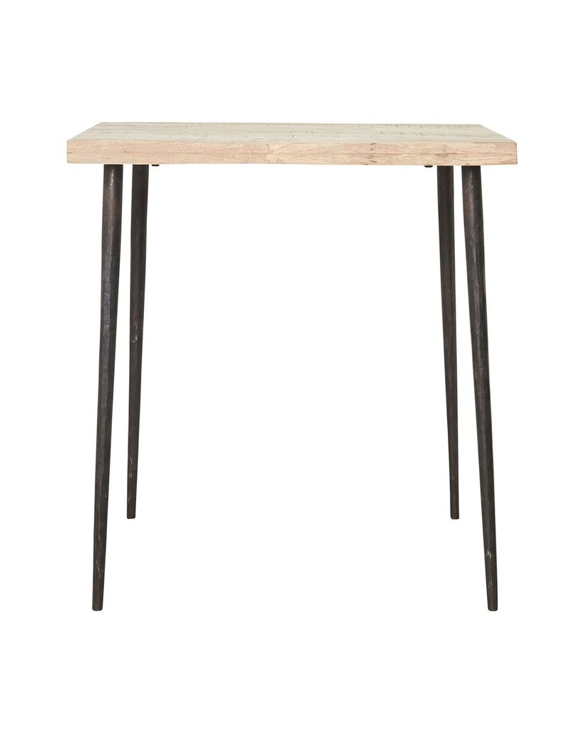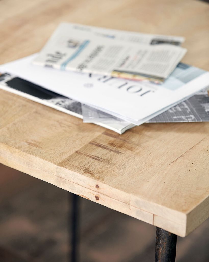 Stilrent och mångsidigt kafébord i mangoträ med järnben, perfekt för både matplats och arbetsutrymme.