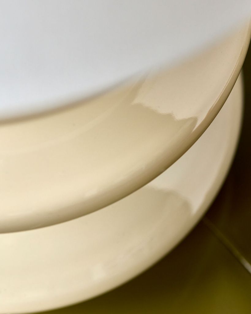 Elegant bordslampa med skulpturell glasbas och handgjord bomullsskärm. Skapar ett mjukt och inbjudande ljus för en stämningsfull atmosfär.