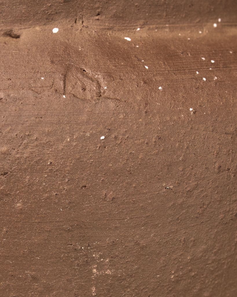 Elegant handgjord kruka i antikbrun lergods, perfekt för träd och buskar. Frostbeständig och med dräneringshål.