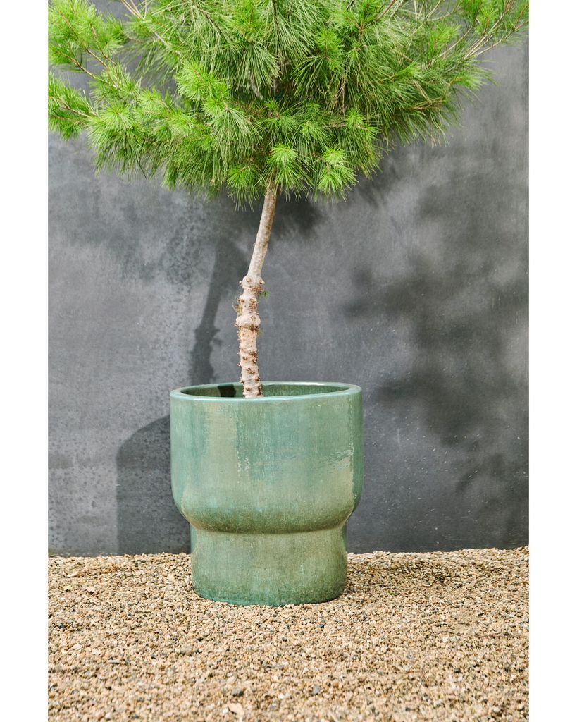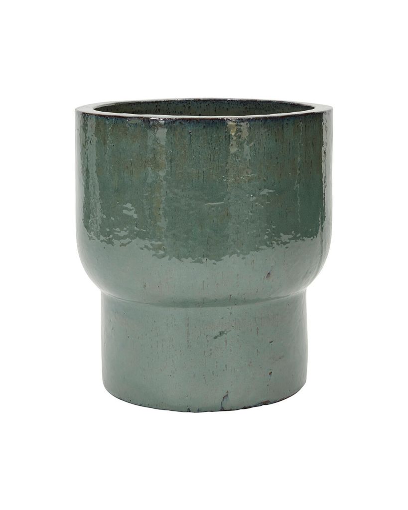 Förhöj trädgården med House Doctor Terra Kruka i grön keramik. Handgjord med unik glans och charm, perfekt för utomhusbruk.