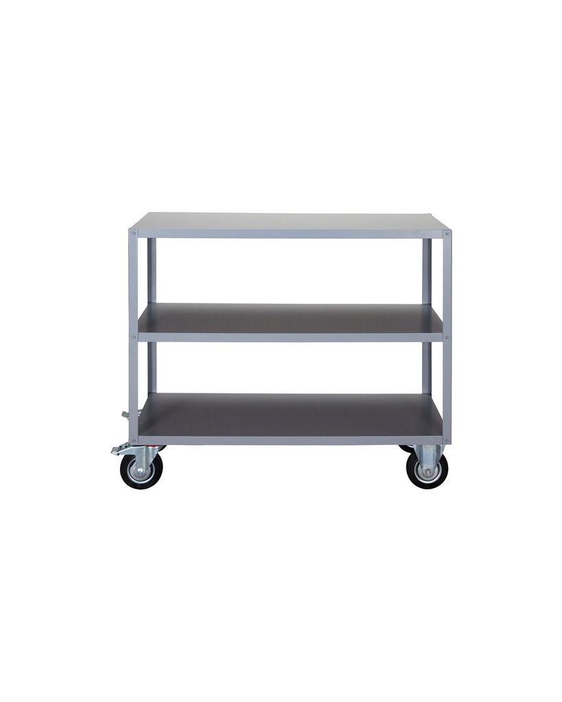 Stilren och funktionell hyllenhet i grått stål med låsbara hjul som erbjuder flexibel förvaring och modern design.