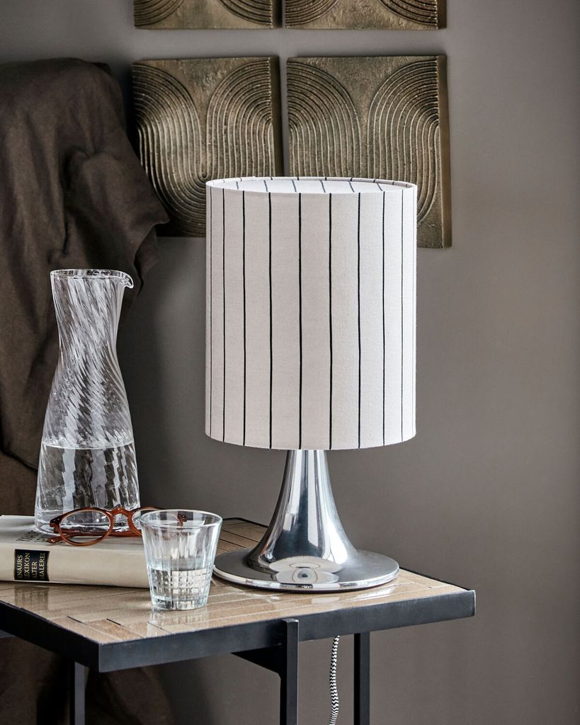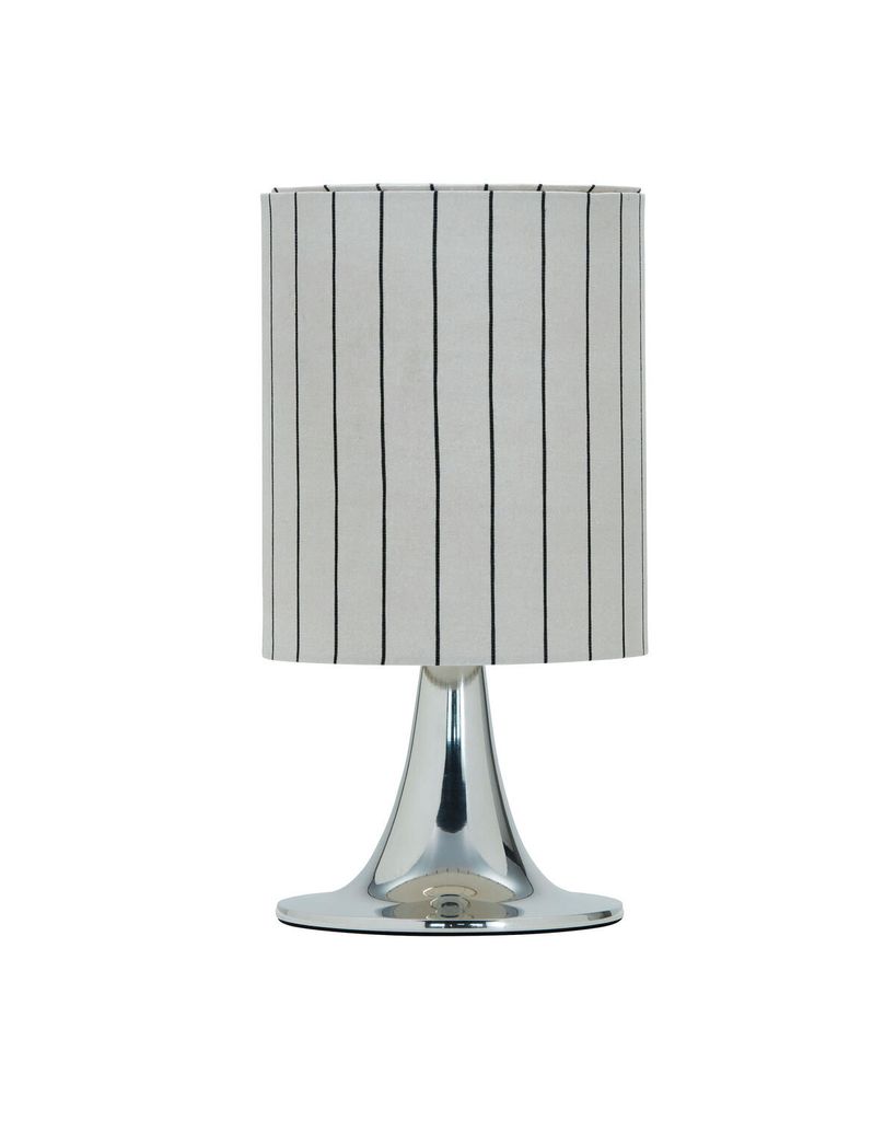 Ge ditt hem en modern touch med denna eleganta bordslampa i silverfinish och randig linnefärgad skärm.