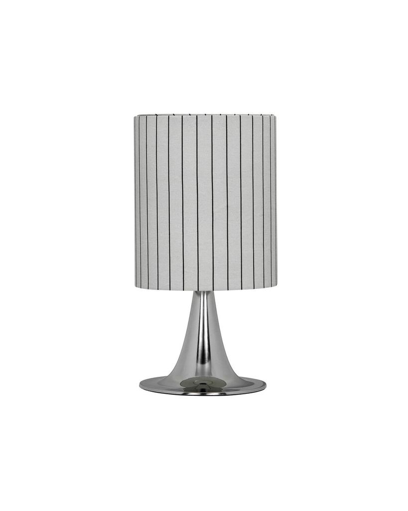 Elegant bordslampa med silverfinish och randig tygskärm i kontrastfärger. Skapar ett stilfullt uttryck i varje rum.